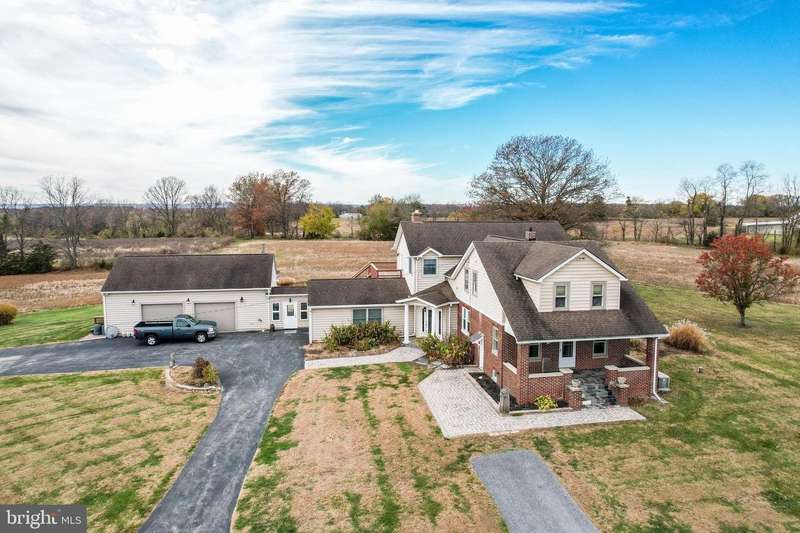 Welcome to your private retreat in the heart of Carroll County! Nestled on 35.9 secluded acres not in ag preservation, this exceptional property combines country living with luxury amenities. The 4,000+ finished sqft residence showcases cherry hardwood floors, an expansive country kitchen with granite countertops, island, stainless steel appliances, and a sunny dining area with a bow window open to the inviting family room featuring a wood-burning fireplace, stone and brick accents, and custom built-ins. Main level highlights include a large office, formal living and dining rooms, a wet bar, updated full bath, and a recreation room addition with kitchenette, pool table, and half bath-perfect for entertaining! Upstairs, the primary suite is a true retreat with heated floors, vaulted ceilings, sitting area with wet bar, three walk-in closets, and access to a private balcony overlooking the rear yard. The ensuite bath offers dual granite vanities, a jetted tub, and a custom walk-in steam shower. Two additional bedrooms, a full bath, and laundry complete the upper level. Step outside to enjoy the backyard oasis-an in-ground saltwater pool, hot tub, expansive patio, and multi-level deck with new boards, all overlooking rolling fields. The attached oversized 4-car garage houses mechanicals for the 7-zone propane heating system, additionally powered by solar panels. Bonus features include two water heaters, generator, two central A/C systems, heated floors, security system, and paved roundabout driveway. Outbuildings include a large pole barn, dairy barn, and 5-bay machine shed-ideal for equipment, hobby farming, or livestock. A rare opportunity to own a private, self-sustaining Carroll County estate with modern comforts and timeless charm!