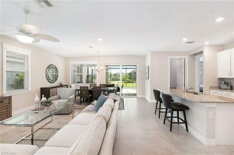Available Starting May 2025, Nestled in the heart of South Naples, Naples Reserve is a gated community that captures the essence of Florida living. With its grand entrance and waterfront views, this vibrant community offers a casual, fun-filled lifestyle. Surrounded by 22 lakes and nature preserves, Naples Reserve is as breathtaking as it is serene. The newly built Island Club features a tiki bar, cafe, and resort-style pools, making it the perfect spot to unwind. This exquisite heated pool home offers a spacious, modern floor plan with stylish upgrades throughout. From sleek light fixtures to new tile flooring and contemporary furniture, you'll feel right at home. The master suite includes a king-size bed, large flat-screen TV, and stunning lake views from the lanai. Two guest rooms, each with a queen bed and TV, share a full bathroom. Enjoy dining with family and friends at the table for six, or relax by the pool overlooking the lake. Cable and internet are included. Available for summer rental starting May 2025. Don't miss out on the opportunity to experience this gorgeous home in a fantastic community! Note: The property is already booked from January to April 2025.