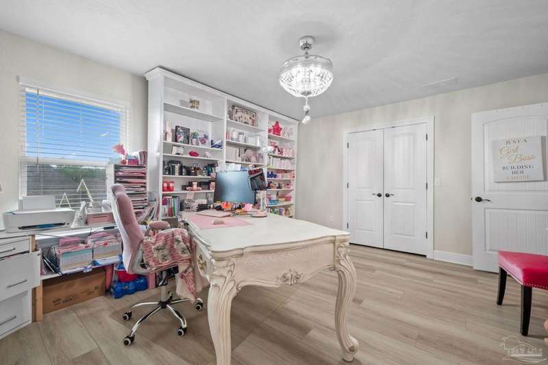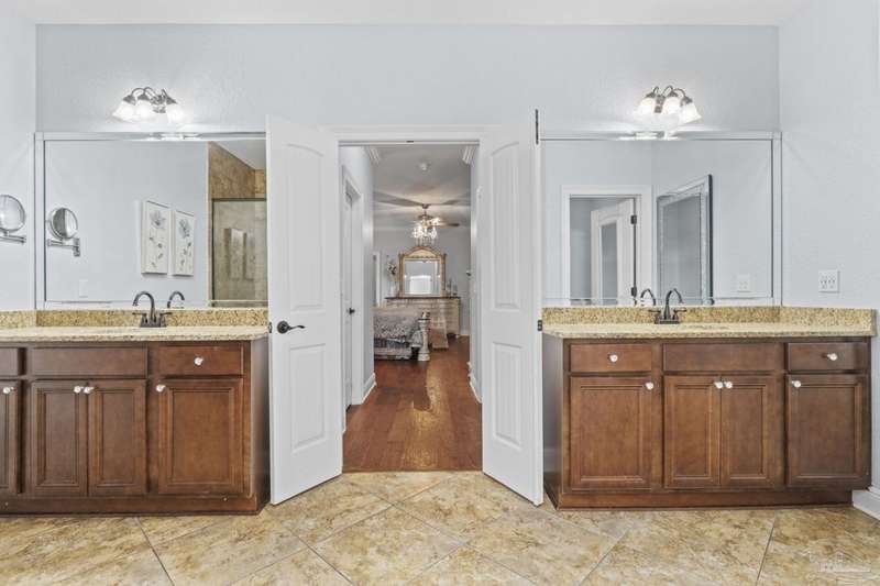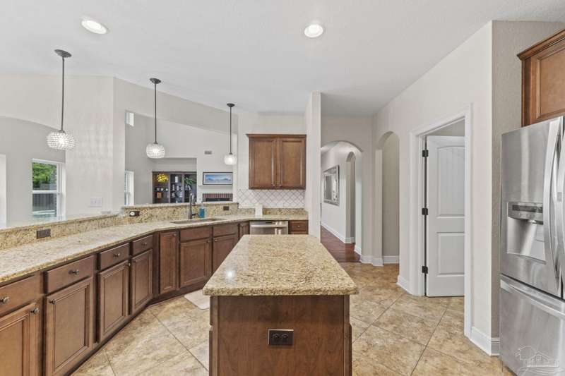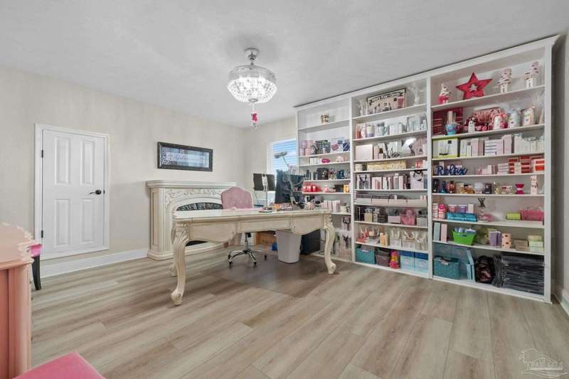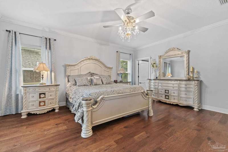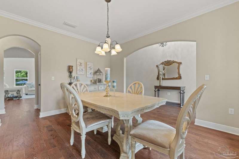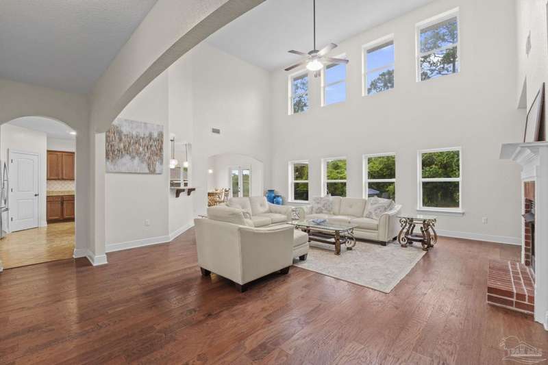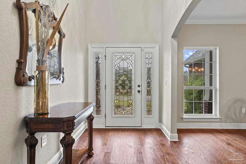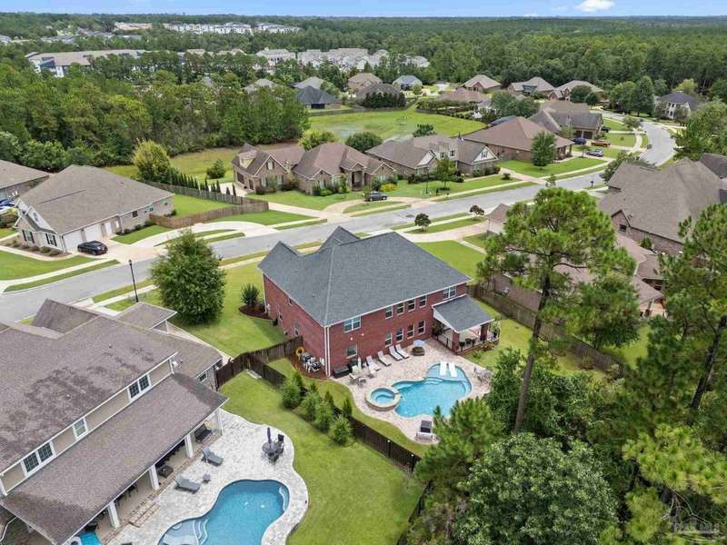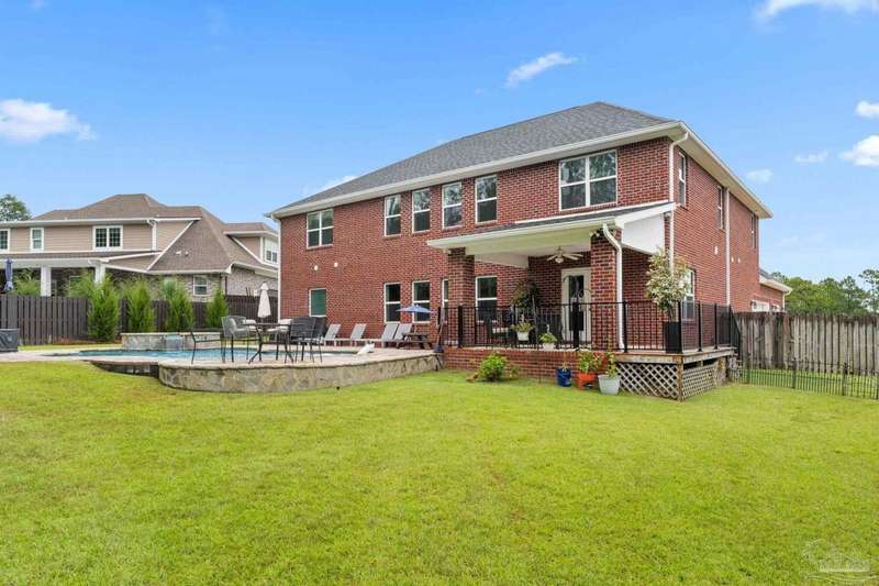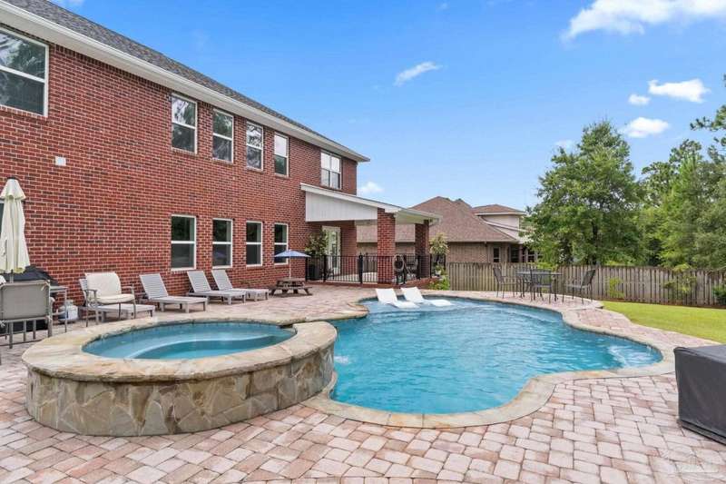Looking for a large estate home on an expansive lot? THIS IS IT!! This stunning 6-bedroom, 3.5-bath residence is perfectly situated near the back gate in Nature Trail, backing up to a beautiful natural conservation area that ensures both privacy and serenity. Inside, this home offers both luxury and function. The master suite, located on the main floor, is a true retreat with three oversized walk-in closets, a cozy fireplace, and spa-like bath amenities. The main level also features a formal dining room, and a grand two-story family room with a fireplace, custom built-ins, and a dramatic wall of windows. The gourmet kitchen showcases granite counters, stainless appliances, an island, hop-up bar, eat-in dining area, and a convenient butler's bar connecting to the formal dining room. Upstairs, you'll find five additional bedrooms and a game room, offering plenty of space for family, guests, or hobbies. Thoughtful storage solutions throughout the home-including a walk-in attic for seasonal d�©cor or crafting supplies-ensure everything has its place. Outdoors, enjoy your private paradise with a gunite pool and spa, all within a huge fenced backyard that provides ample room for entertaining, play, or quiet relaxation. The Nature Trail community delivers an unmatched lifestyle with amenities including: 24-hour gated security with golf cart-friendly streets, Community lodge and fitness center, Tennis, pickleball, and basketball courts, Disc golf, fishing pond, and playground, Community pool and 5 miles of hiking trails, Sidewalk-lined streets with underground utilities, Seasonal neighborhood events fostering connection and fun. This estate combines elegance and privacy in one of Pensacola's most desirable communities. You will love living here!