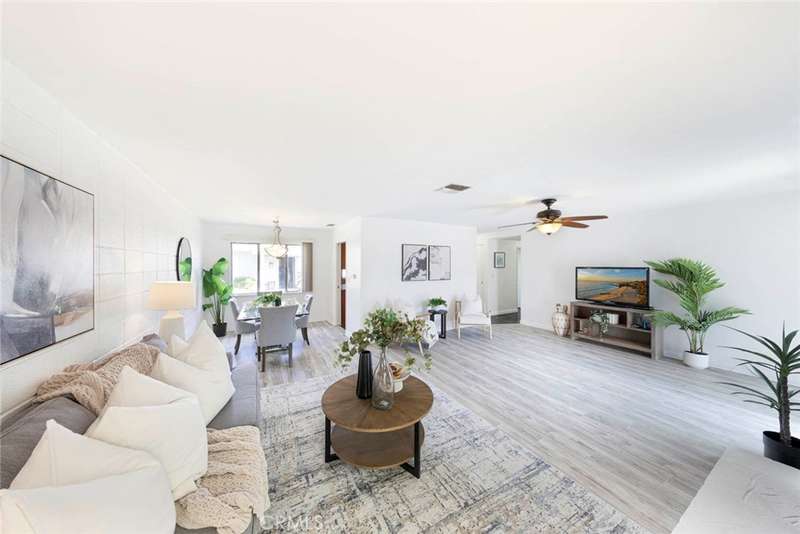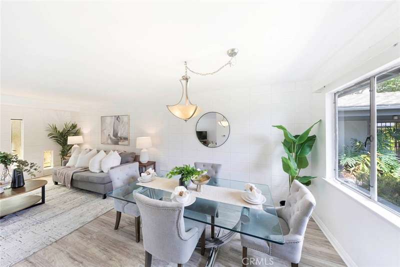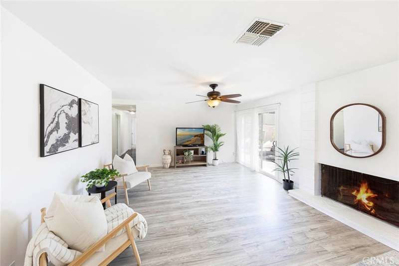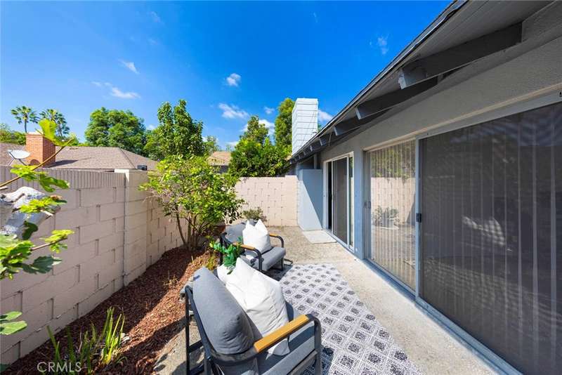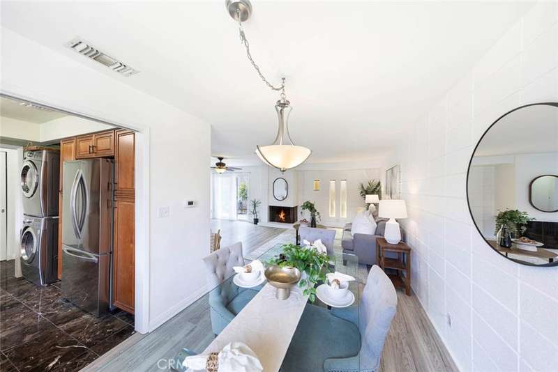 Enjoy North Tustin style living for less! This charming single-level condo offers 2 bedrooms, 2 bathrooms, and approximately 1,283 sq. ft. of beautifully updated living space--all with no steps at the entry or inside the home. Located in the highly sought-after Hewes Middle School and Foothill High School district, this home has no one above or below for added privacy. Designed with a mid-century modern vibe, the home is filled with natural light from walls of windows and sliding doors that create a bright, airy feel throughout. Inside, you'll find thoughtful upgrades throughout. The kitchen was fully remodeled in 2012 with granite countertops, custom cabinetry, and modern appliances. An LG refrigerator (2024) is included with the home, along with a stackable washer and dryer conveniently located in the kitchen. Additional kitchen upgrades include a new exhaust fan (2020) and disposal (2024). The guest bath vanity and granite countertop were updated in 2018, while the primary bathroom was remodeled in 2019 by a licensed contractor, featuring a whirlpool tub, new plumbing, tile work, window, and exhaust fan. Electrical updates include a dedicated 220 VAC line for the tub. Additional highlights include: New laminate flooring installed August 2025 (professionally leveled, measured, and moisture-tested). Gorgeous marble flooring in kitchen and hallway. AC unit replaced in 2022 (with 5-year manufacturer warranty. Smart programmable thermostat (2022). Cozy gas and wood-burning fireplace. Garage door opener installed in 2012. Small HOA of only 4 homes. Enjoy the private backyard, perfect for outdoor dining or barbecues, with direct access to the two-car garage. A one-of-a-kind single-story condo with yard and two-car garage!