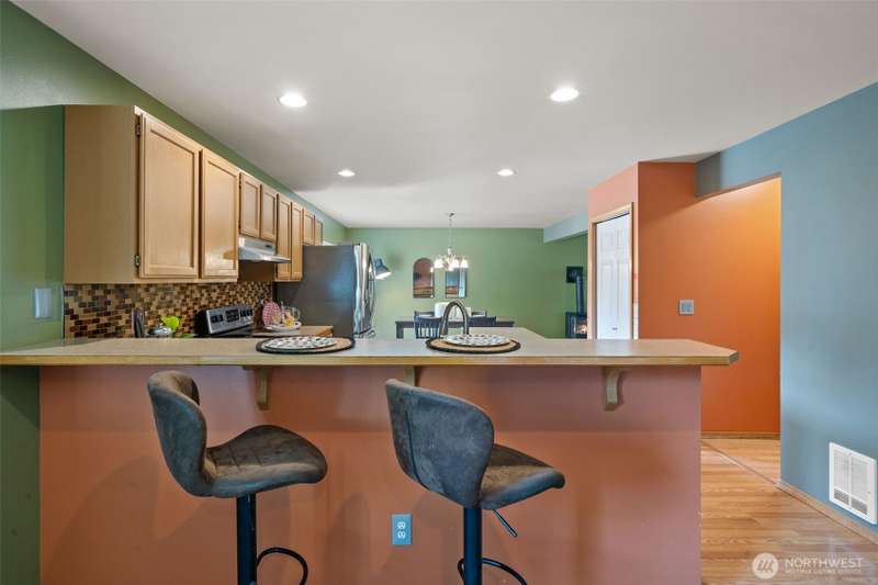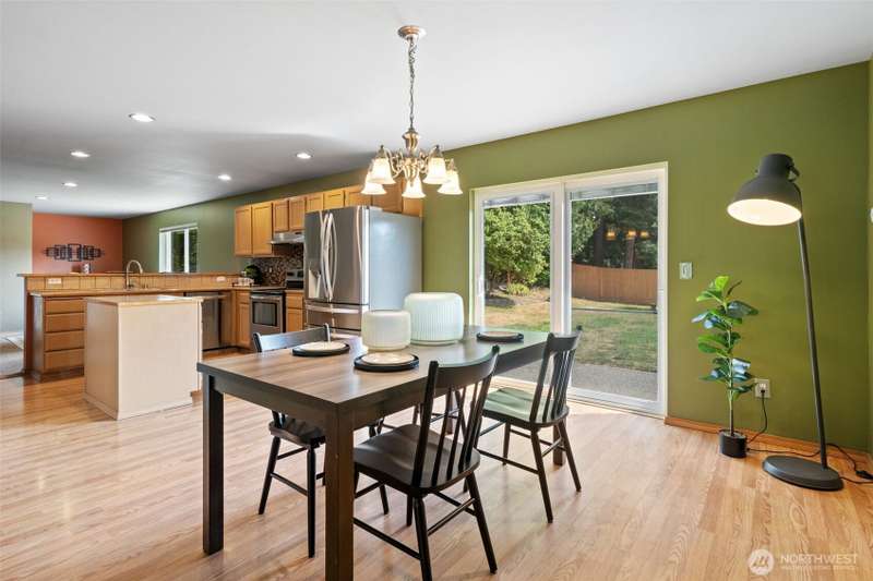 OFFERED AT WELL UNDER TAX ASSESSMENT! This Fabulous 3-bedroom, 2.5-bath Kingston home just 11 minutes to the ferry and 16 minutes to Poulsbo! Thoughtfully designed floor plan offers space for everyone. Full of charm inside and out—relax on the covered country porch or entertain in the private, fully fenced backyard. Cozy propane stove for those chilly days. The primary suite offers a walk-in closet and attached bath. You will enjoy the Asian pear trees. Neighborhood offers two community parks, including one with beach access, a playground, picnic pavilion, and boat launch. And a BB court. Close to schools/shops & commuter routes!