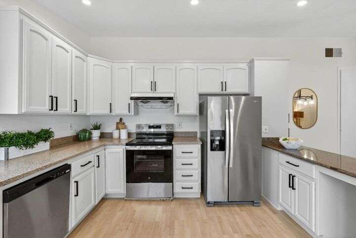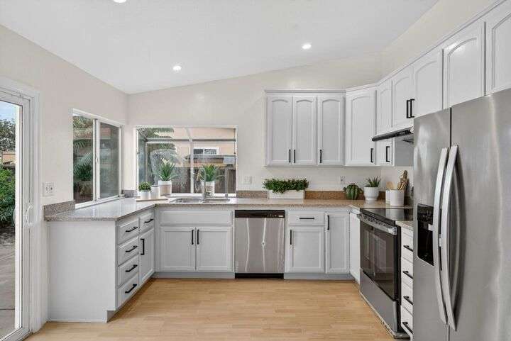 Move-in ready has never looked this good. Thoughtfully refreshed with todays buyer in mind, this home features brand-new stainless-steel stovetop and dishwasher, new light fixtures, recessed and ceiling lighting throughout, fresh interior paint, and new plush carpeting. Step inside to a bright, open layout highlighted by soaring vaulted ceilings, a sun-filled picture window, and a cozy fireplace that sets the perfect tone for relaxing evenings. The kitchen offers generous cabinetry and a sliding glass door that opens directly to the backyardideal for seamless indoor-outdoor living and effortless weekend gatherings. Outside, the expansive lot is a true retreat featuring mature fruit trees, a large patio for entertaining, and abundant space to design your dream garden or explore the impressive ADU potentialup to 1,200 sq. ft.The primary suite serves as a peaceful sanctuary with private access to the backyard, while the two-car garage includes built-in storage for everyday convenience. Situated near BART, Union Landing, top-rated schools, and major freeways, this home blends comfort, flexibility, and future expansion potential in one exceptional package.