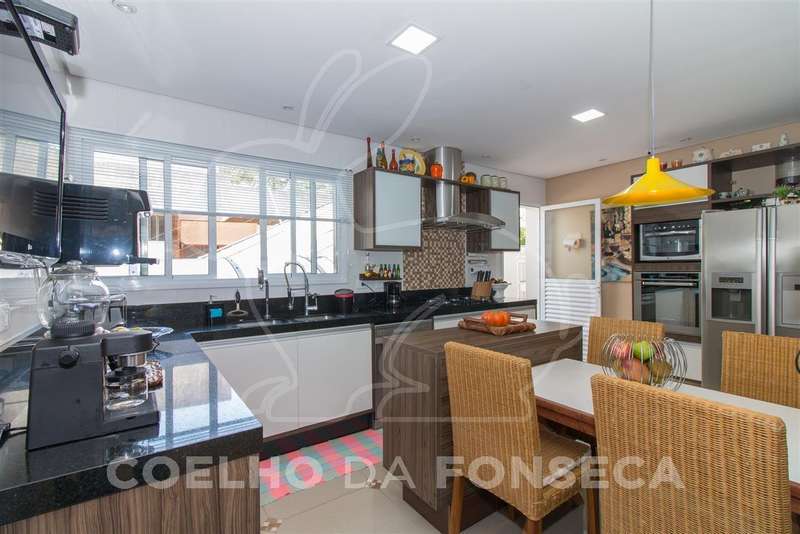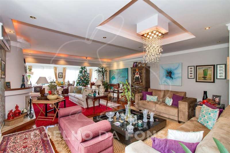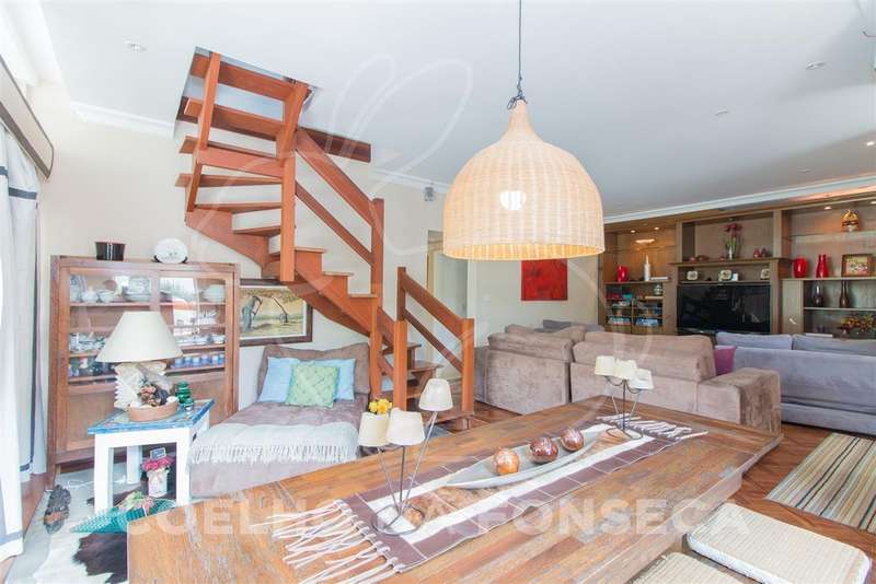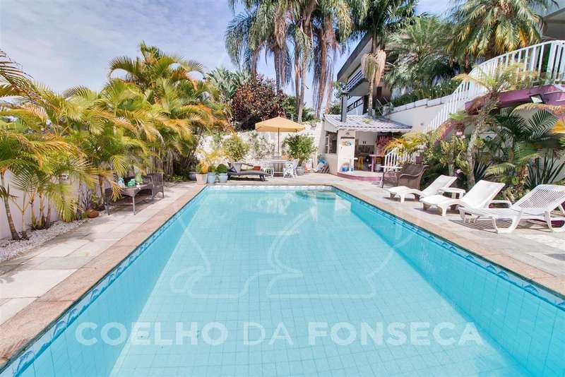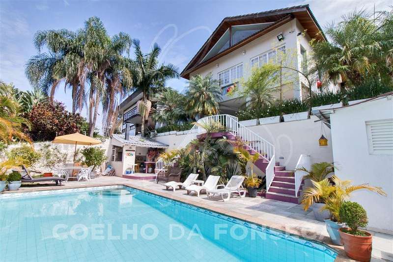 Residência com belíssima vista, clara e arejada, três suítes, living com lareira, área externa com jardim e piscina, grande terraço, salão de festas com lavabo.