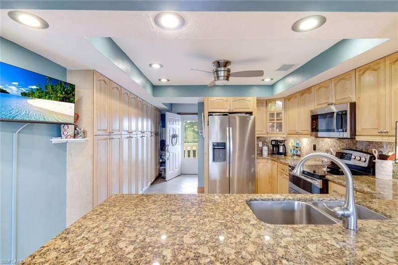 Welcome to Stratford Place, a beautifully maintained 55+ community that captures the best of Southwest Florida living! Perfectly located just minutes from the pristine beaches of Fort Myers, Sanibel, and Captiva, this spacious condo offers easy access to endless shopping, dining, and entertainment options. With over 2,700 square feet of living space, this thoughtfully designed residence features three bedrooms and three full bathrooms, each with its own private en suite. The open kitchen is perfect for entertaining and includes granite countertops, stainless steel appliances, and plenty of cabinet and counter space. Recent updates include hurricane-impact windows and doors, two new air-conditioning units installed in 2022, and a brand-new roof completed in 2023. There is no shortage of storage with multiple interior closets and two large exterior storage units. A flexible layout allows for a variety of living arrangements, including a private mother-in-law suite or guest retreat. This area features a private entrance, a comfortable living space, and a wet bar, providing convenience and privacy for guests or extended family. The oversized balcony offers the perfect spot to unwind and enjoy picturesque water views with stunning western exposure sunsets. The Stratford Place community is built around a charming island oasis featuring a heated pool and clubhouse for social gatherings, along with lakeside amenities such as shuffleboard and BBQ grills. Residents also enjoy elevator access and grocery carts for added ease. For peace of mind, this home had no flooding during recent hurricanes. Stratford Place offers the perfect blend of comfort, community, and convenience. Call today to schedule your private showing!
