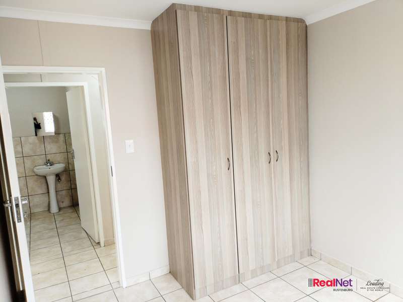 Welcome to your new sanctuary in the prestigious WATERKLOOF HILLS Estate! This beautiful home offers a modern suburban lifestyle with the best price. Property features: 3 Bedrooms 1 Bathroom with separate Toilet for your convenience. Fully fitted kitchen (built-in cupboards with granite tops) Open plan Lounge Built in cupboards. Solar Geyser covered Carport Prepaid Electricity and Water is Metered. 24 Hour Security. Burglar bars and Security system installed Washing machine point Easy access to highways and main roads Close to Waterfall Mall and Waterkloof Secondary School Call us to schedule your appointment and secure your new Home...