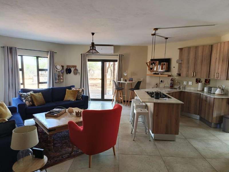 Discover this magnificent, newly revamped three-bedroom home nestled in the serene and prestigious Sondela Nature Reserve, conveniently located between Bela-Bela and Settlers. This spacious residence offers ample room for family living, with each bedroom featuring its own full bathroom and air conditioning. The ground floor bedrooms open onto the garden, while the upstairs bedroom leads to a patio, creating seamless indoor-outdoor living. The open-plan kitchen boasts ample storage and fridge space, complete with a water point, and each level includes a cozy lounge area. The ground floor lounge is equipped with an air conditioning system, while the upper floor lounge opens onto a large patio perfect for game viewing. Enjoy outdoor entertaining with a detached Lapa featuring a built-in braai area, a swimming pool for hot summer days, and a boma for cozy winter nights by the fire. Whether you're seeking an investment opportunity, a holiday retreat, or a retirement haven, this wonderful property is the perfect choice. The furniture is available at a negotiable additional cost to the purchase price. Seize this incredible opportunity and make this dream home yours today!