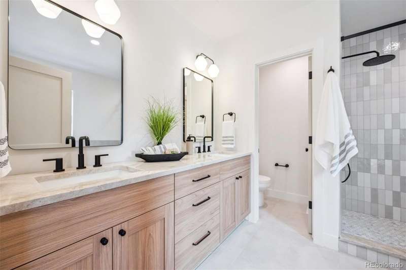 New Price for this Rare New Construction Single Family Home in the coveted Potter Highlands Historical District with 3 beds, 4 baths and almost 2600 sq ft of living space Situated just blocks from coffee shops, restaurants and retail in the Highlands, Zuni Street and LOHI neighborhoods * Professionally Designed and Built By One Of The Neighborhood's Top Builders * Super Unique Brick Exterior and Interior Layout (truly one of a kind) * Luxurious Living room with den and gas fireplace and 9 ft wide NANO doors to the outside patio * Chef's kitchen with pro appliances, pantry and Taj Mahal quartz countertops waterfall island - perfect for entertaining *Tons of natural light and oak hardwood floors throughout the main level. * Dining room off kitchen and living room * Front entryway has built in storage and a bench. *Upper level spacious owner's suite with vaulted ceilings, hardwood floors, balcony, x-large walk in closet & 5 piece bathroom with soaking tub and walk in shower * One (1) more bedroom with ensuite full bath along with laundry with utility sink and cabinets on the upper level * Lower level has a guest suite, full bathroom, family/media room* Fully Fenced Private Back Yard and detached two (2) car garage * This great home comes with a TESLA solar power array on the roof potentially reducing utility costs. * Hard to find a single family home just blocks from all that the Highlands and LOHI has to offer *