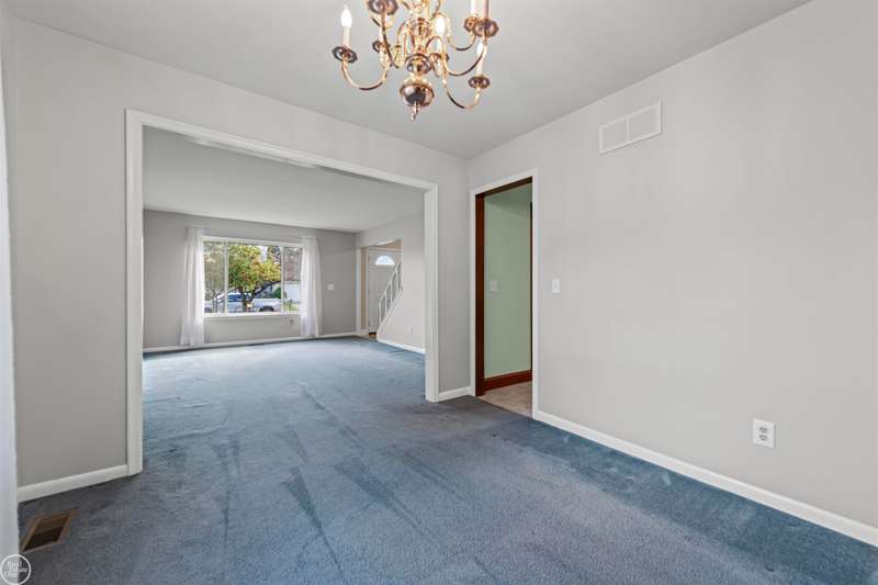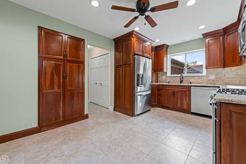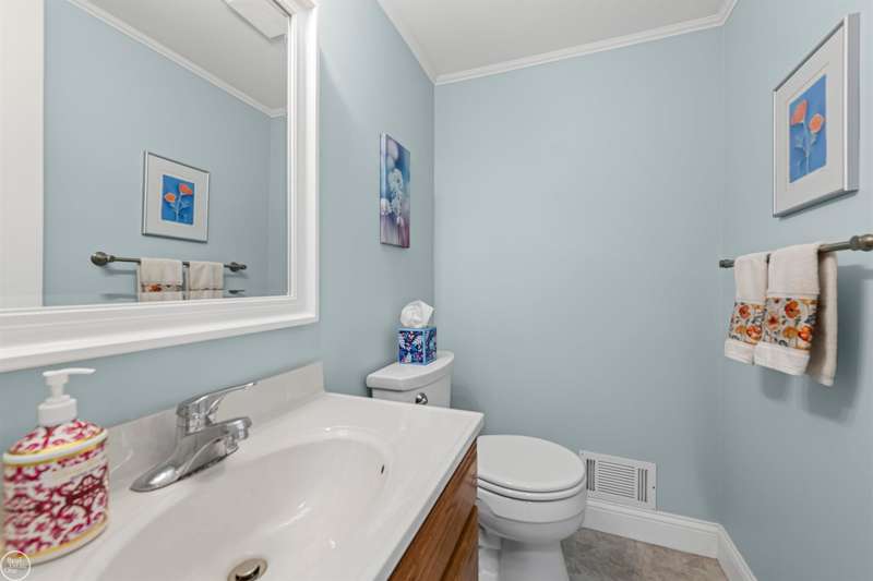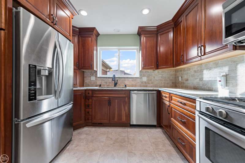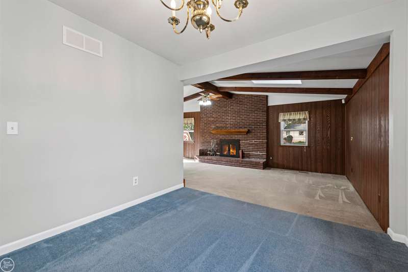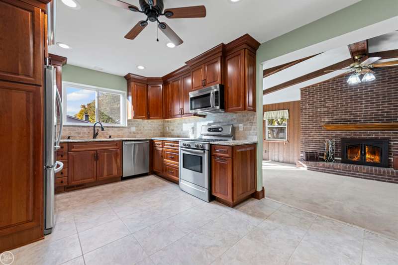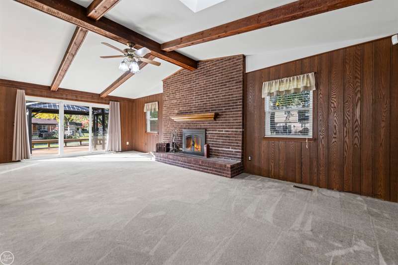 New Price! Spacious and meticulously maintained 3-bedroom colonial makes a perfect family home! This charming home has been lovingly updated and maintained by its current owners of over 30 years. Enjoy a spacious carpeted living room with a large picture window that fills the home with natural light. A formal dining room connects the kitchen and living room perfect for entertaining.The large family room at the back of the home boasts a vaulted ceiling, a natural fireplace, and a door wall leading to the fenced yard. The updated kitchen features tall cherry cabinets, granite countertops, ceramic flooring & backsplash, overhead lighting and stainless appliances. A convenient half bath and first-floor laundry are located just off the kitchen. Upstairs, you'll find three carpeted bedrooms, each with ceiling fans. The spacious primary bedroom includes a huge walk-in closet. The finished basement offers a large storage or workshop area. Step outside to a shaded, fenced backyard with a large maintenance-free Trex deck, covered gazebo, a shed with a cement floor, and an additional cement slab--ideal for your camper or boat. The covered front porch is perfect for enjoying warm evenings. Updates include: roof, skylight, and blown-in insulation (2019); furnace & a/c (2012), kitchen & baths (2019). Carpets have been professionally cleaned October 2025. Inground sprinklers and 2 car attached garage. Immediate occupancy! Chippewa Valley Schools