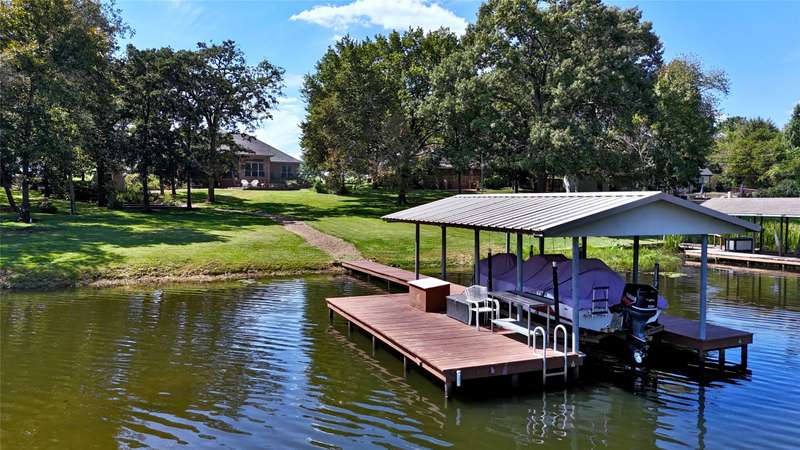 Stunning 4 Bedroom, 2.5 Bath Home on Lake Athens. The home is set just off the main body of Lake Athens, providing an excellent spot for water recreation on the big water. This homes location is in a protected cove making it equally ideal for stand-up paddle boarding, kayaking or a peaceful. morning by the water. The backyard is an oasis, offering an oversized firepit and seating. You will also find a beautiful outdoor stone bar for entertaining and a 2nd flagstone patio closer to the water with access to electric. The covered back porch is so peaceful for enjoying your morning coffee and also offers door access to the primary bedroom, den and kitchen. Inside the home you will find a split bedroom floor plan, as well as an open concept with 2 kitchen bars, convenient for serving, entertaining or enjoying a meal. This home is designed for entertaining, relaxing and enjoying life on the lake, perfect for full time living or a weekend lake getaway. Water depth at the Boat House is 8.5 feet.