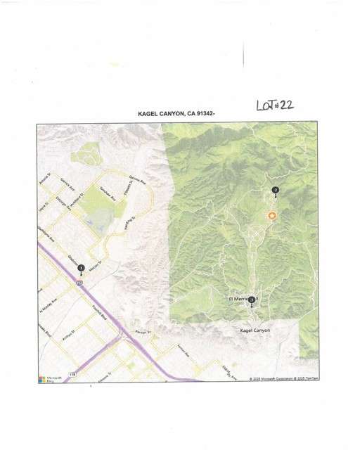Vacant Land in Scenic Kagel Canyon Perfect for Builders & Land Buyers. Coordinates to locate the lot: parcel 2845-021-022 Coords: 34.313408, -118.371681 Discover this beautiful, vacant raw land in the peaceful and scenic Kagel Canyon area. Kagel Canyon in the Sylmar area. Build dreams and create a life or invest in a property with incredible potential. Enjoy breathtaking panoramic views of the San Fernando Valley, all while being surrounded by nature in a tranquil hillside community. ?Surrounded by some residences nearby. Whether you're dreaming of building your perfect retreat or looking for a unique investment opportunity in one of LA s most charming canyon neighborhoods, this is a rare chance to secure your piece of paradise. Don t miss out create your future here and experience the beauty of nature and peaceful living! SURVEYOR'S MAP AS PER BK 18P 19-20 OF L S*LOT COM AT SW COR OF LOT 222 TH E ON S LINE OF SD LOT 27 FT TH N.. Off of Spring Trail. Near kagel Canyon Rd.