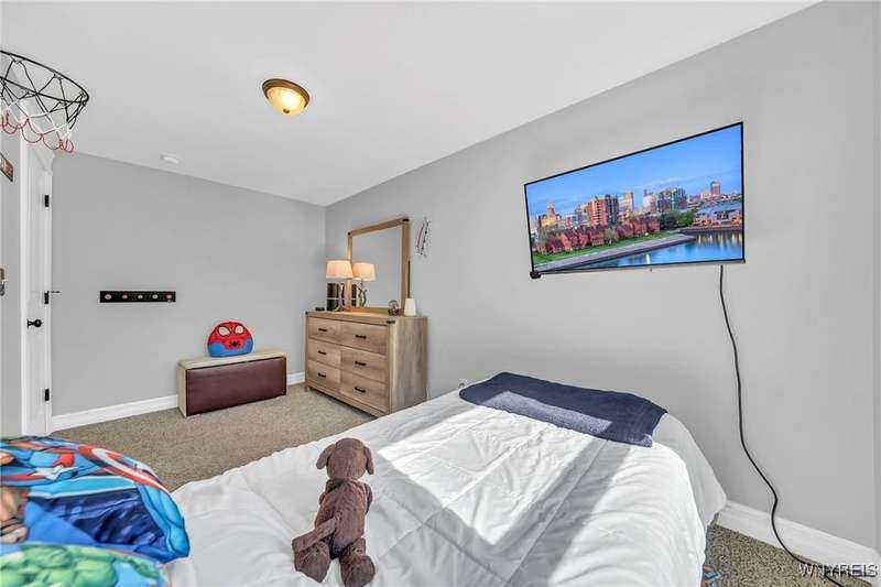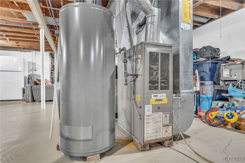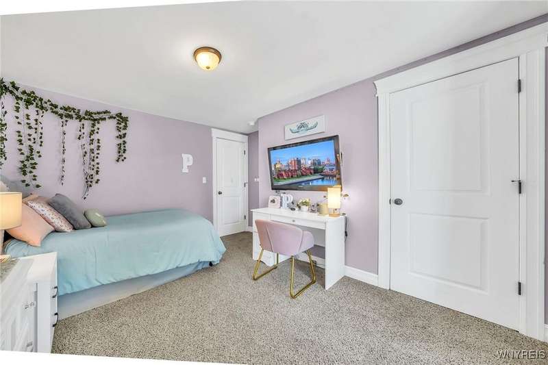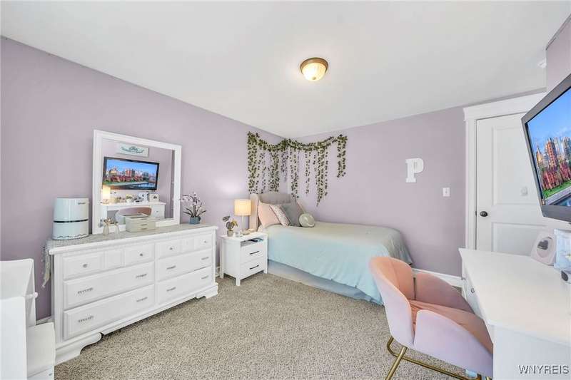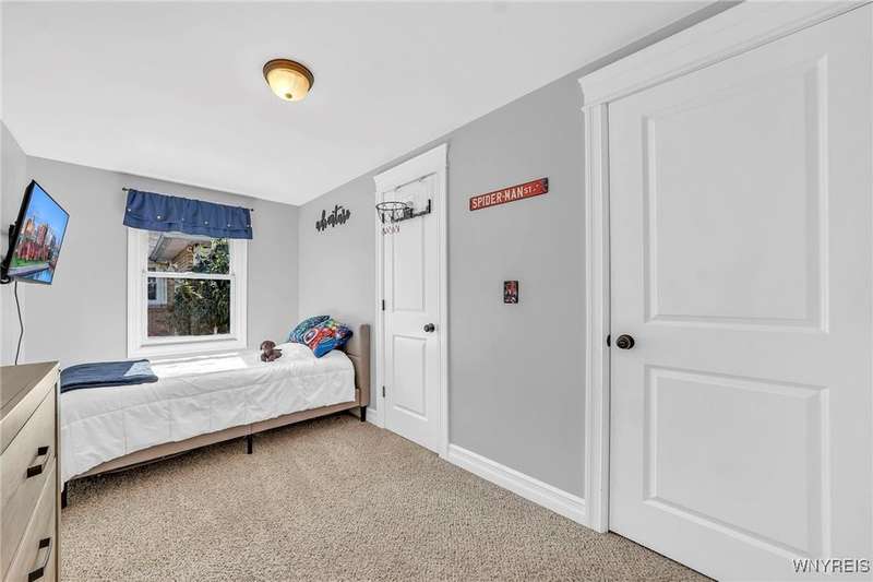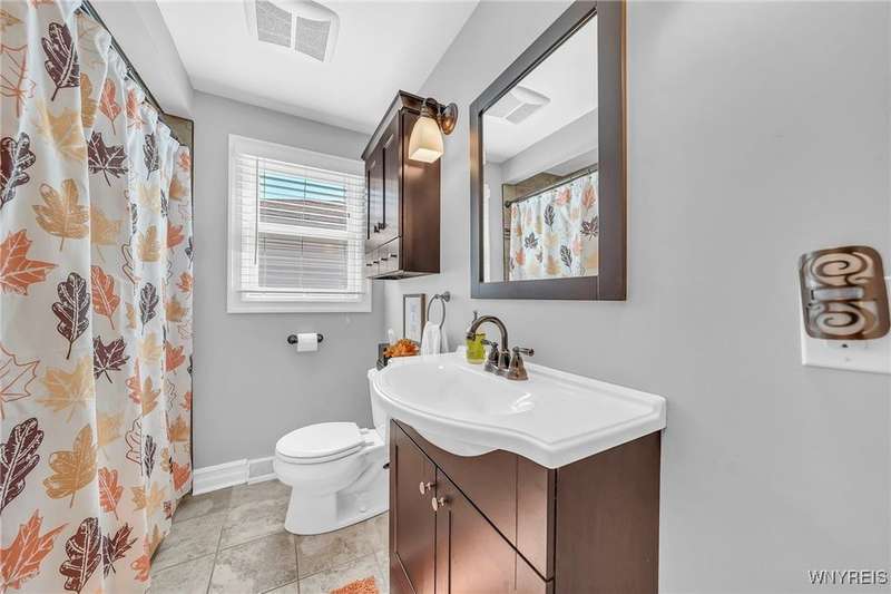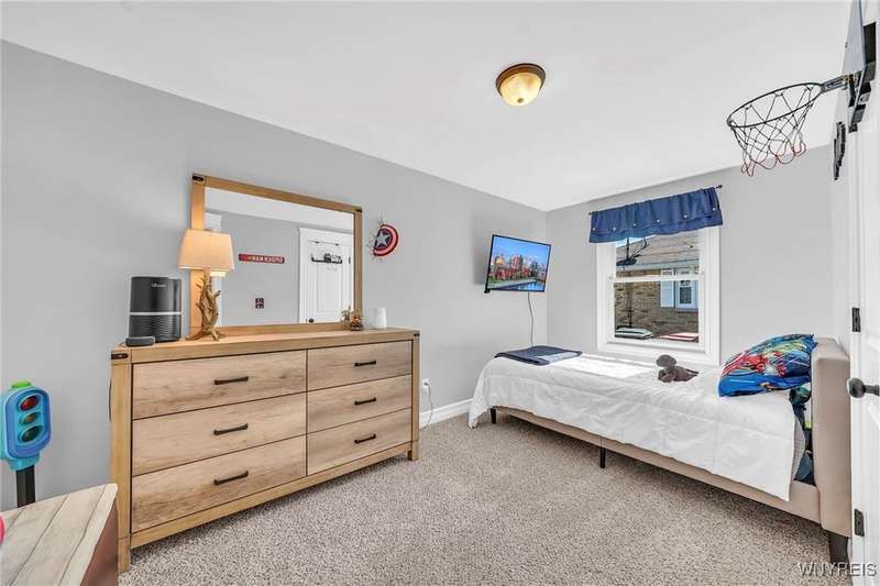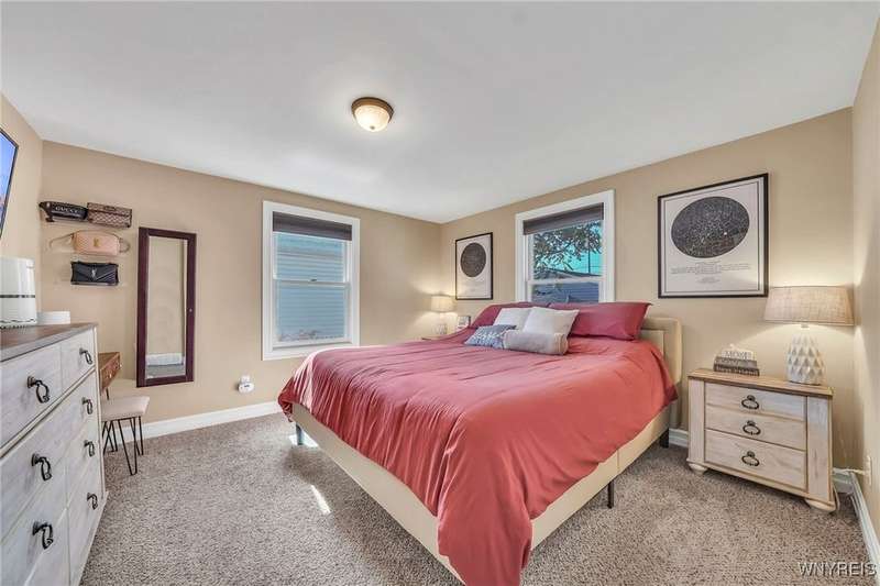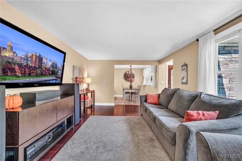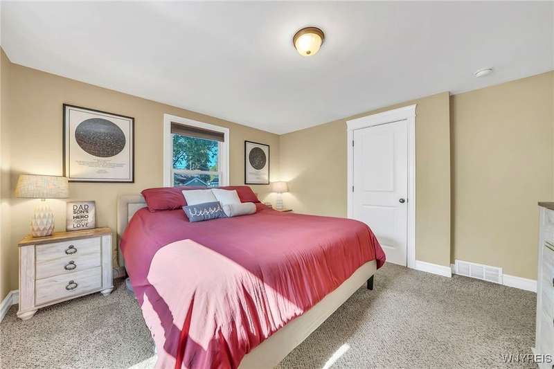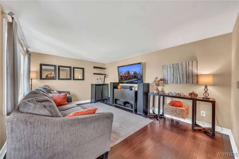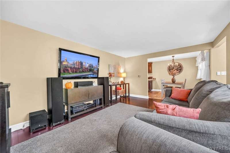 Charming three-bedroom ranch with an inviting open front porch and beautifully updated interior. The living room features bamboo flooring, while the modern kitchen offers recessed lighting, ceramic tile floors, glass backsplash, quartz countertops, cherry Java cabinetry, and stainless steel appliances. The updated bathroom includes a ceramic tile floor. Three bedrooms with wall-to-wall carpeting provide comfort and style throughout. Outside, enjoy a fully fenced yard with deck and concrete patio. Additional highlights include a resurfaced garage floor by Proshield Concrete Coatings, one-car attached garage, central air, and flagstone detail at the front of the home. Conveniently located within walking distance to parks, playgrounds, youth bureau, senior center, shops, restaurants, and schools. This home is immaculate with nothing to do but move in! Showings start immediately. Offers will be entertained Wednesday 10/8/25 at 3pm.