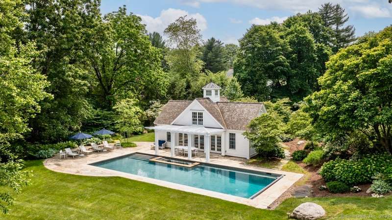 Luxury Living on the Fairfield/Westport Border Set in the heart of Greenfield Hill, this exceptional 6-bedroom, 8-bath estate offers a rare combination of privacy, elegance, and resort-style amenities-just minutes from the Post Road and 50 miles from NYC. Thoughtfully positioned on the Fairfield/Westport line, the residence features expansive, sun-filled interiors ideal for everyday living and entertaining. Recently refreshed with new paint and carpeting, the home includes a formal living and dining room, a large eat-in kitchen, and generously sized family spaces throughout. The finished lower level is designed for wellness and fun, with a 6-person sauna, steam shower, and a spacious game/media room. A third-floor flex space offers the perfect spot for a yoga studio, home office, or quiet retreat. The outdoor experience is equally impressive: a heated saltwater pool and spa, tranquil ponds, a cascading waterfall, and lush manicured lawns set the tone for relaxed luxury. Entertain with ease using the fully equipped outdoor kitchen and fire pit, or shoot hoops on your private basketball court. Additional highlights include a full gym, wine cellar, elevator servicing all levels, and two separate 3-car garages-ideal for collectors. A pre-paid landscaping contract through 2031 ensures the grounds remain pristine year-round. This is an extraordinary opportunity to enjoy the best of Fairfield County in a setting that feels like a private resort.