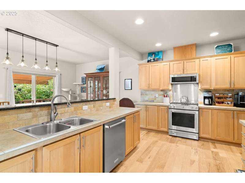 4 bedroom outstanding craftsman style home that has been impeccably maintained. Open concept with high ceilings, hardwood floors through out main level and newer carpets upstairs. Kitchen has high quality Kitchen Aid appliances and beautiful cabnetry. Primary bedroom has large walk-in closet, soaking tub and shower. Backyard is fully fenced with two apple trees and a water feature. Deck has a roll out retractable awning. Property backs to forested area. Also included are central air conditioning, electronic air filter and built in garage storage. Home is close to light rail, Nike, high tech & Streets of Tanasbourne.