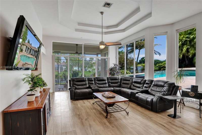 Welcome to this stunning 5-bed, 3.5-bth home with a private pool, perfectly situated on a lake with golf views in the highly sought-after community of Heron Bay. Features an open floor plan with a seamless blend of comfort and elegance. Enjoy a brand-new roof, two new A/C units, new pool pump & skimmer. The spacious master includes custom closets with a spa-inspired bath. Engineered wood flooring & tile throughout, adding warmth and sophistication. Outdoor living is enhanced by a screened-in lanai overlooking the pool & lake. Heron Bay provides a lifestyle like no other, access to two clubhouses offering country club amenities, and activities for the entire family. Located in an area known for excellent schools, this home combines luxury, functionality, & community living at its finest.