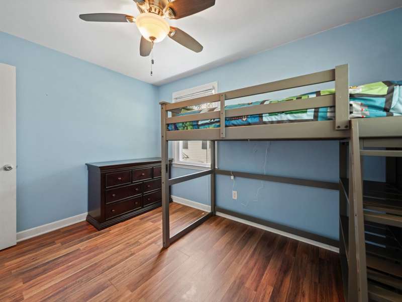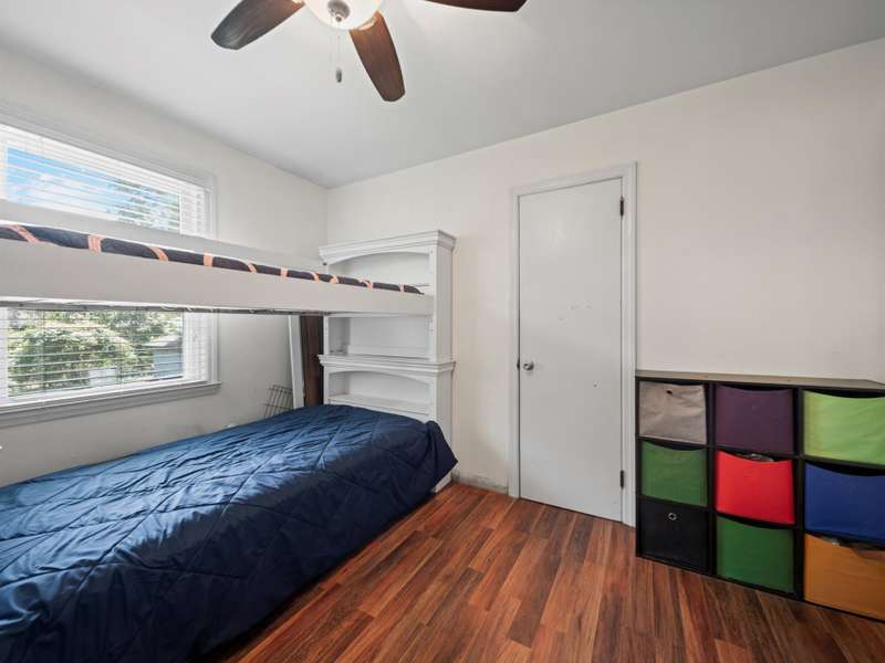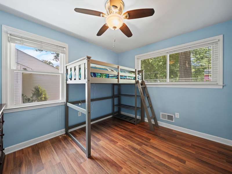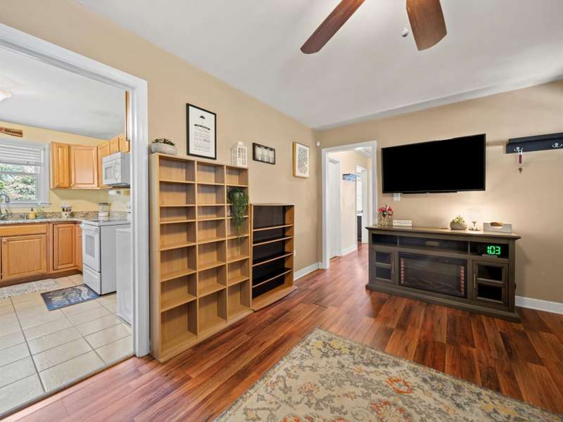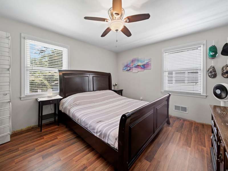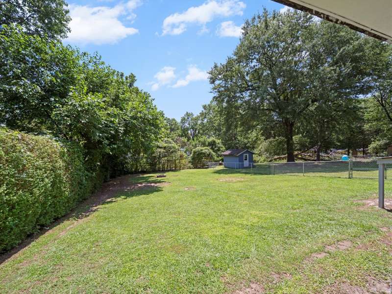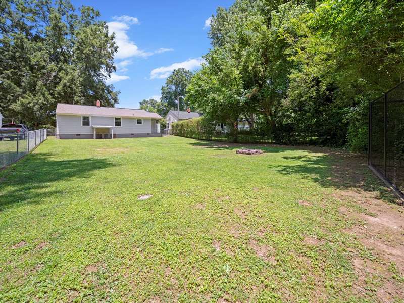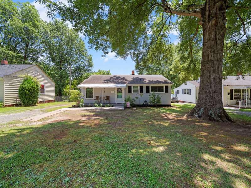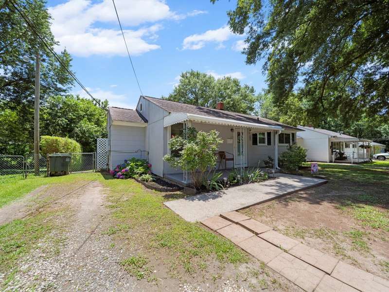 Discover this adorable and well cared for 3-bedroom, 1-bathroom ranch, perfectly situated on a quiet street yet in close proximity to shops and restaurants. Step inside to an inviting and bright living room, ideal for relaxation and gatherings. The home boasts laminate wood flooring throughout, granite counter top, and tile floors in kitchen and bathroom providing an updated and easy-to-maintain living space. Each room is equipped with ceiling fans and window blinds, ensuring comfort and privacy year-round. Enjoy your morning coffee or evening breeze from the comfort of the covered front porch. The spacious, fenced backyard offers ample room for outdoor activities or gardening.