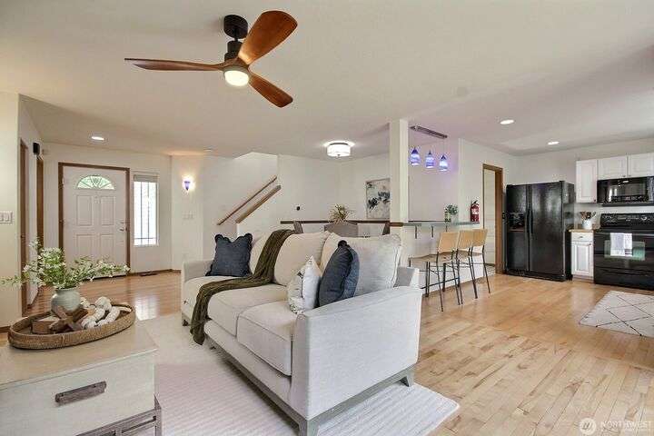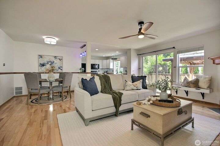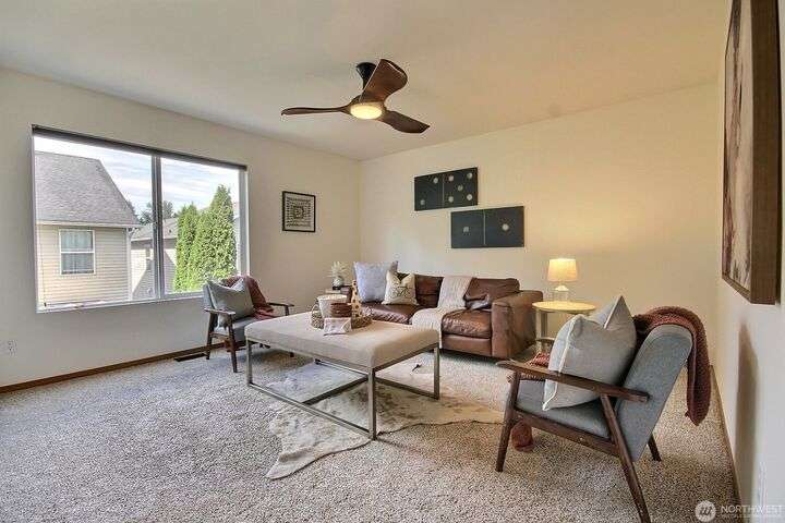 Nestled in the highly sought-after Liberty Ridge neighborhood of Renton Highlands, this well-kept 3-bed, 2.5-bath home is filled with natural light and the open-concept main floor features hardwood flooring and cozy gas fireplace. Upstairs, you'll find all new carpeting, an oversized en-suite primary with huge walk-in closet, two additional bedrooms, and a full guest bath. Step outside to a sun-drenched backyard and patio with pegola—perfect for relaxing or entertaining. Added conveniences like central AC and an EV charger ensure a comfortable living experience! With community sports courts and playgrounds just steps away, and easy access to The Landing, I-405 and Hwy 167 this location can't be beat! Pre-inspected for your peace of mind!