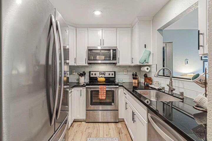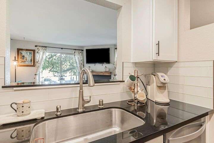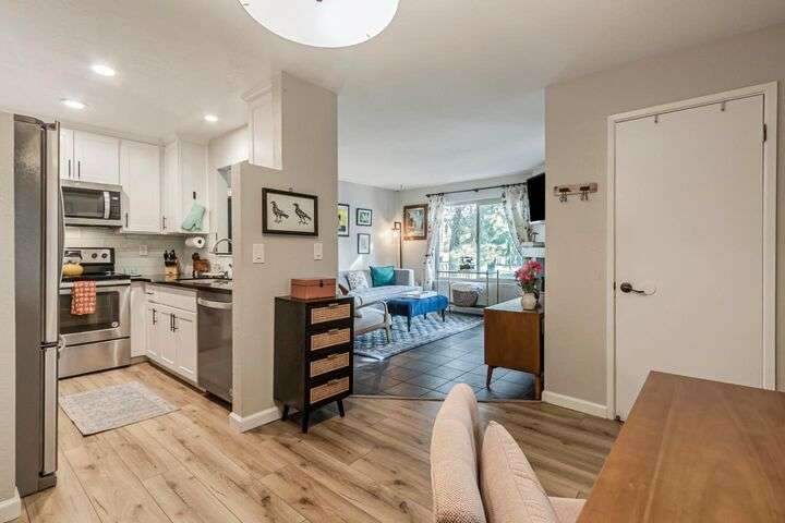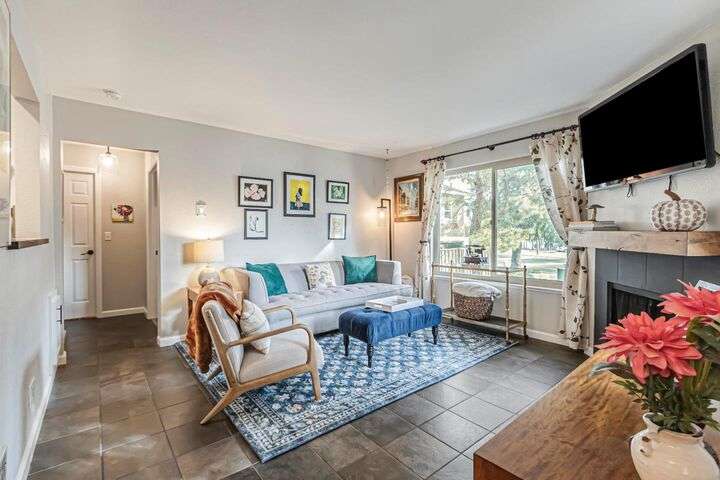 Welcome to 2857 S. Bascom Ave #101, in desirable Cedar Terrace! This beautifully updated 1bedroom/1bathroom 668 sq ft ground-floor corner unit offers two underground, video-monitored parking spaces, guest parking, award winning schools and lots of natural light. Featuring an updated kitchen with granite countertops, stainless steel Whirlpool appliances, and ample cabinet space, plus a convenient serving hatch to the living area. The living room is bright, with slate tile flooring with radiant heat, recessed lighting, a large double-pane window, and a cozy tile-surround wood-burning fireplace. The spacious bedroom offers laminate flooring, double pane windows, and a cedar-lined walk-in closet. The fully updated bathroom features a modern vanity, tile flooring, a shower over tub, and LG full size washer and dryer. This community offers digital-controlled entry, pool, spa, clubhouse, and beautifully maintained garden landscaping. Located just minutes from Downtown Campbell, The Pruneyard, and highways 17 and 85, it provides easy access to shopping, dining, and commuting. Nearby schools include Farnham Elementary, Price Middle, and Branham High School. This condo combines style, convenience, and a prime location, perfect for comfortable living.