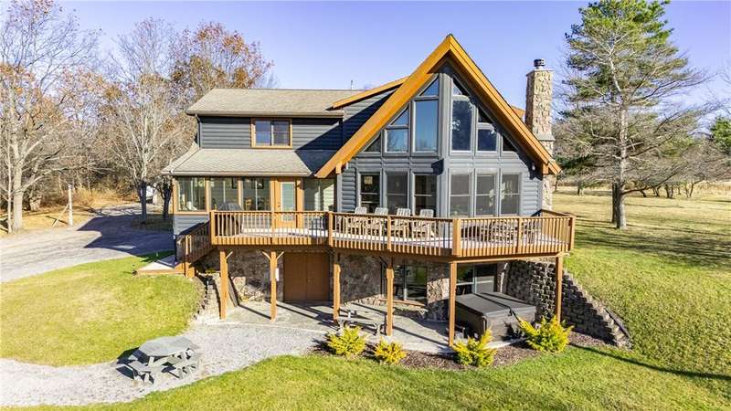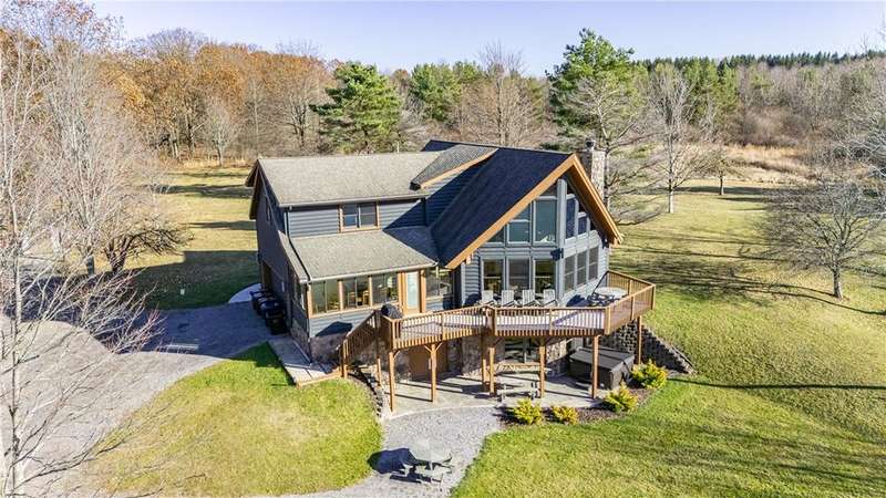 STUNNING LUXURY "POST AND BEAM" 4 BED, 3 BATH MODERN FARMHOUSE READY FOR THE COVER OF ARCHITECTURAL DIGEST MAGAZINE!! SITS ON 38+ ACRES W/STOCKED POND, WOODS, & TRAILS READY FOR YEAR-ROUND ACTION W/HIKING, CAMPING, HUNTING, FISHING, SWIMMING, TRAIL BIKING, SMORES, & STAR GAZING!! OWNER INVESTED OVER $100K UPDATING ALMOST EVERY INCH INSIDE & TOPPED IT OFF W/PROFESSIONALLY DESIGNED/STYLED INTERIORS TO PERFECTLY COMPLIMENT EXPOSED WIDE PLANK PINE INTERIOR WALLS & CEILINGS! CHEF'S KITCHEN W/SMOOTH BUTCHER BLOCK COUNTERS, STACKED STONE BACKSPLASH, SILESTONE SINK & SS APPLS!! OPENS TO GREAT RM W/MASSIVE TWO STORY WALL OF GLASS, PEAKED PINE CEILING & GAS SMOOTH-STONE FIREPLACE! DINING RM EASILY SEATS 10 W/BREAKFAST BAR FOR MORNING COFFEE OR USE AS STAGING CENTER FOR LAVISH OR RUSTIC MEALS W/FRIENDS, FAMILY OR BOTH! HEAD FROM DINING ROOM TO AMAZING HUGE DECK OVERLOOKING POND FOR COFFEE IN THE AM & SUNSETS/WINE SIPPING/BOURBON TASTING IN THE PM! PRIMARY SUITE HAS WOOD-BURNING STOVE, GORGEOUS GLASS ENCLOSED, FLOOR-TO-CEILING TILED SHOWER, GRANITE, PINE WALK IN CLOSET! 2 ADDTL BEDR ON 2ND FL SLEEPS 6 W/ANOTHER BATH - COULD SLEEP MORE W/BUNKS! & FOR YOUR "NO STAIRS PLEASE" GUESTS- MAIN LEVEL HAS 4TH BEDROOM W/EN SUITE FULL BATH! FINISHED LOWER LEVEL FOR MORE FUN: TABLE TENNIS/GAMES/DARTS/WINE/TV/OLD SCHOOL VIDEO GAMES! EVEN THE LAUNDRY ROOM IS STYLED FOR A MAGAZINE SHOOT! ADDTL LOWER-LEVEL STORAGE, 2 CAR GARAGE, & DETACHED SHED! PERFECT ESCAPE WEEKEND GETAWAY, YEAR-ROUND HOME, OR COMBO WEEKEND HOME/INVESTMENT PROPERTY! NEW SEPTIC LINES & DISTRIB BOX INSTALLED W/RECENT SERVICE, NEW PROPANE FURNACE WINTER HEAT, WHOLE HOUSE A/C IN SUMMER, HOT TUB FOR ANY TEMPS ALL YEAR LONG! HELLO, INVESTORS ? THIS COULD BE YOUR NEXT RENTAL INVESTMENT! CURRENTLY RENTS ON AIRBNB W/NO TOWN RESTRICTIONS! ALL YOU ADRELANIE JUNKIES WHO NEED 5-STAR ACCOMODATIONS AFTER ALL THE SHENANIGANS, THIS IS IT! MINUTES TO BRISTOL MTN, MINUTES TO HONEOYE, CONESUS, OR CANANDAIGUA LAKES FOR BOATING, RESTAURANTS, CRAFT BREWERIES, OR SPEND THE DAY HEADING OUT TO CMAC CONCERTS, FINGER LAKES WINE TRAILS, FESTIVALS! NO MORE PLANE RIDES TO GET TO YOUR LUXURIOUS HAPPY PLACE - ITS ONLY A 40 MIN DRIVE TO ROCHESTER!