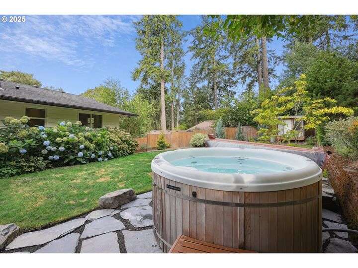 Come quickly…offer now in hand. Call with interest. New Price! Welcome to this charming and spacious home in the sought-after Cedar Hills Berkshire neighborhood! Step into a light-filled living room featuring high ceilings, beautiful floors, and a cozy wood-burning fireplace, perfect for relaxing evenings. The formal dining room also provides an elegant space for entertaining. The beautifully updated kitchen features wood floors, stainless steel appliances, a granite cook island with an eating bar, and a seamless flow into the main level family room. Enjoy casual gatherings by the 2nd of the three fireplaces or step through the sliding doors to the fully fenced backyard. The main level offers what could be 3 bedrooms and 2 baths as it was originally configured, but was converted to a larger suite, with a walk-in closet and an ensuite bath with an open shower. This was and could easily be split into two separate bedrooms again by a buyer. Another bedroom and the second full bath with a soaking tub and double vanity, plus a dedicated laundry room, complete the main floor. Downstairs, discover a versatile lower level with the third or what could be a 4th bedroom (with walk-in closet), a third full bath with a shower, and a large second family room with fireplace and separate entrance is ideal for guests, an in-law quarters, or the potential of a rentable unit. You’ll also find an office (possible non-conforming 4th/5th bedroom), a craft room, and a bonus room offering ample space for hobbies, work, or play. The backyard is an entertainer’s paradise with a slab patio, lush gardens, garden shed, and raised vegetable beds, and inviting jacuzzi, making the backyard paradise ideal for BBQs and summer fun. Enjoy the convenience of nearby schools, parks, freeways, Cedar Hills Crossing, the MAX station, and Nike HQ. Walk to local parks, coffee shops, and cafés. This home truly offers the best of comfort, space, flexibility, and location.