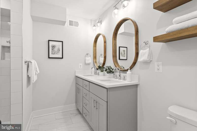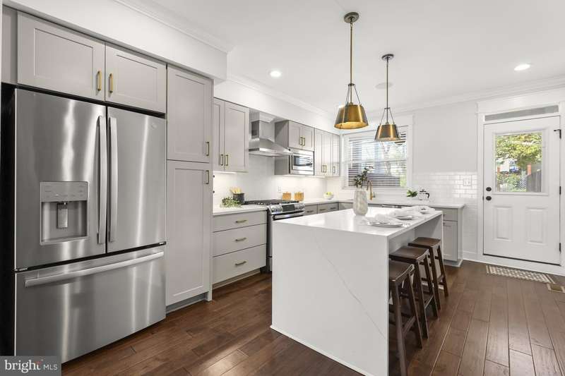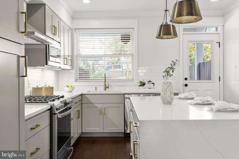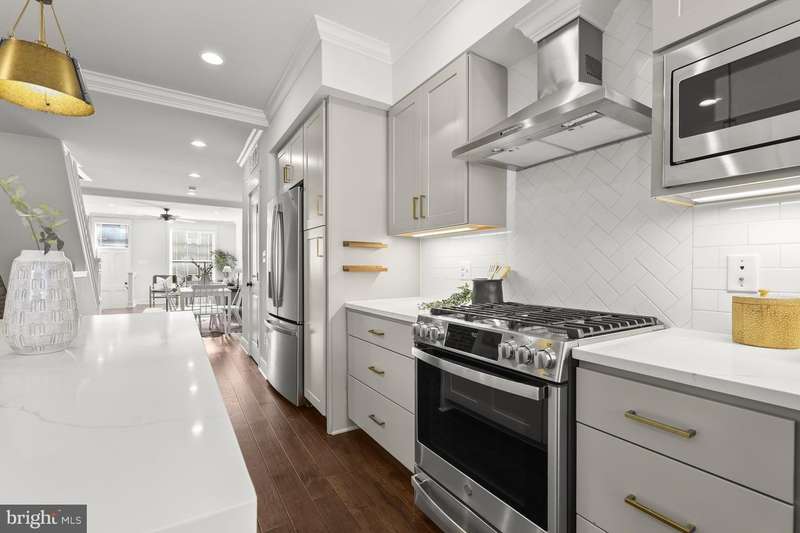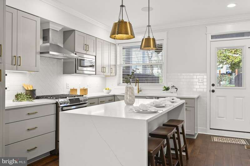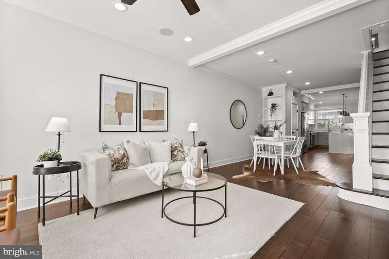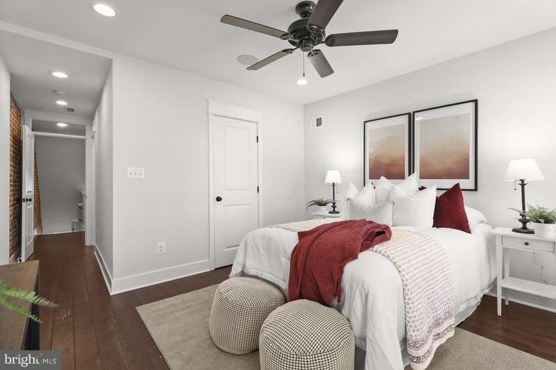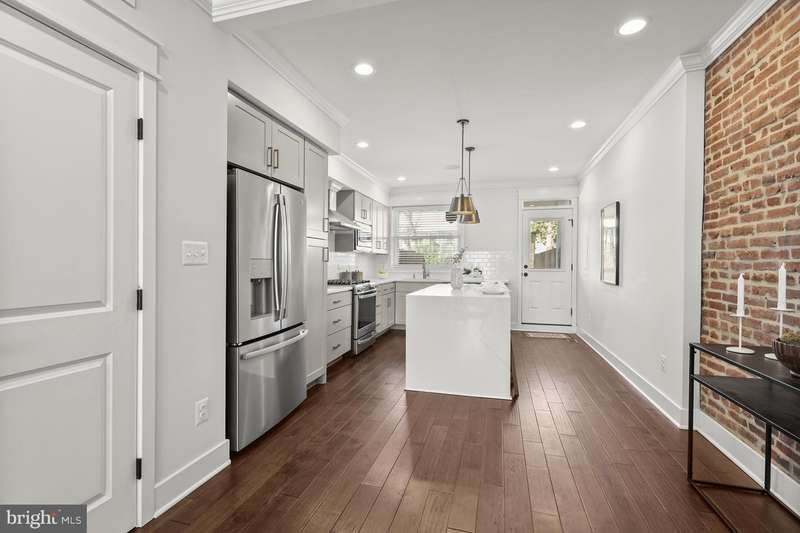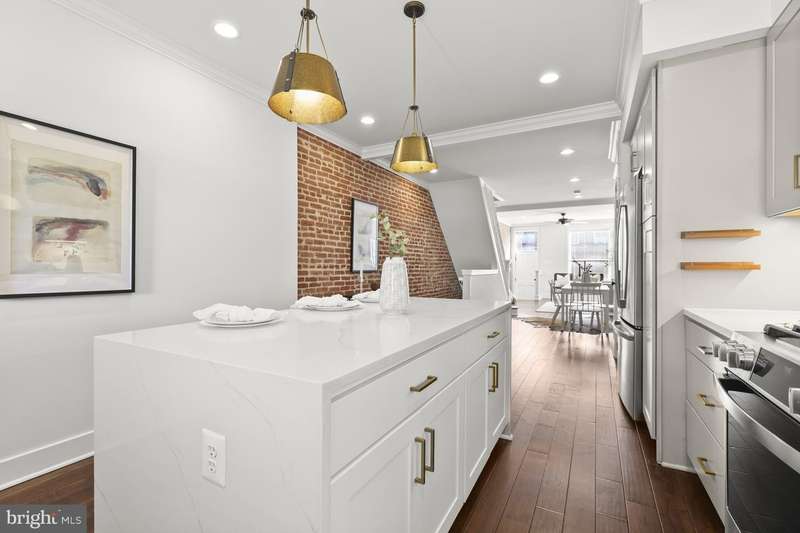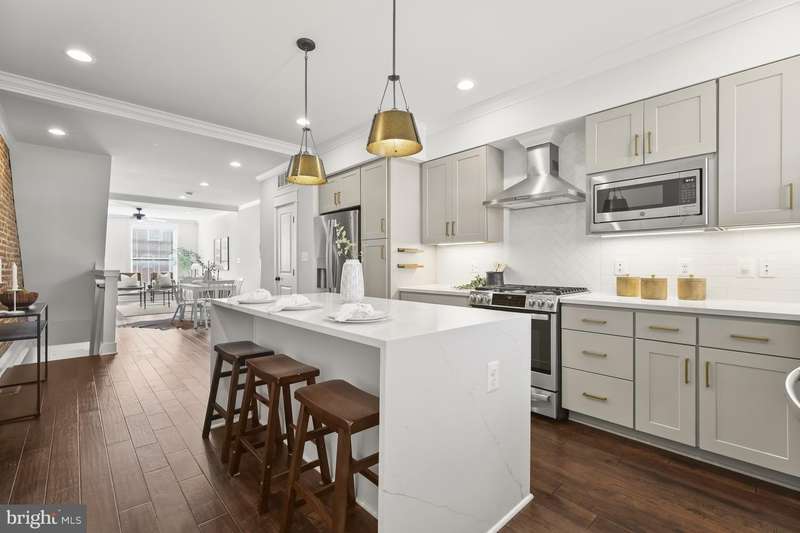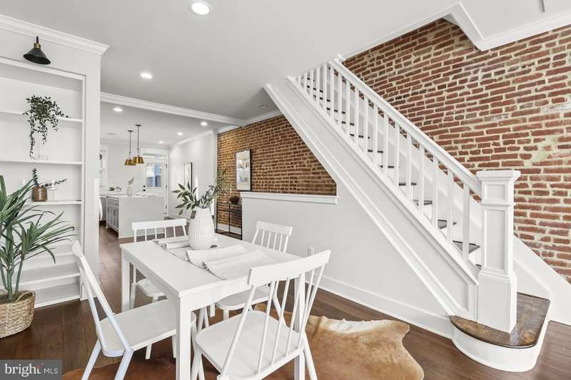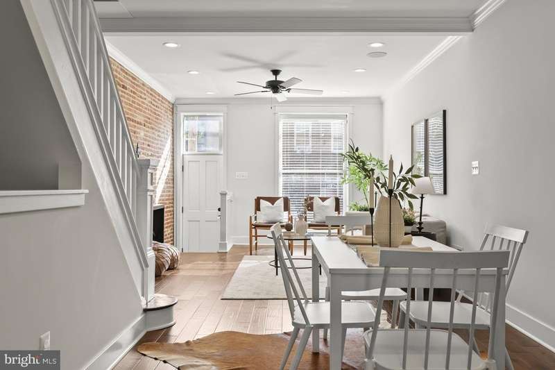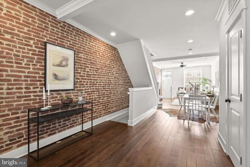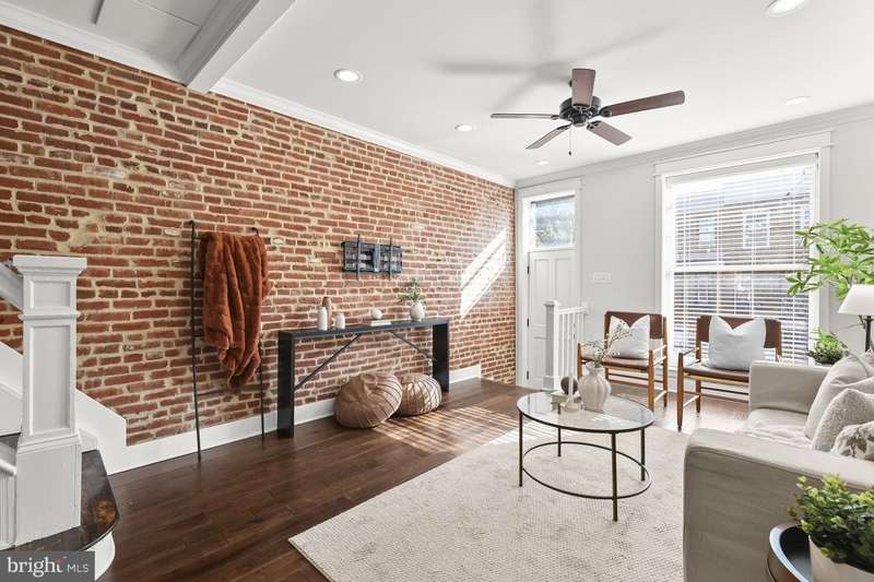 Discover the best of city living in this stunning Building Character renovation, complete with 7 years remaining on the CHAP tax credit (annual taxes less than $4,000)- a rare opportunity with long term savings! Inside, you'll find soaring ceilings, exposed brick, crown molding, and gleaming hardwood floors that create a warm, sophisticated feel. The spacious living room flows into the dining area, highlighted by custom built-ins perfect for display or audio equipment. At the heart of the home, the chef's kitchen features a dramatic waterfall quartz island with seating, 42""Â? soft-close cabinetry, subway tile backsplash, quartz counters, and premium stainless steel appliances-an ideal space for both daily living and entertaining. The upper level boasts a luxurious primary suite with a walk-in closet, recessed lighting, hardwood flooring, and a spa-like en-suite bath with dual vanities and a glass-enclosed shower with dual shower heads. A second bedroom with vaulted ceilings and exposed brick has easy access to a designer hall bath with rain shower. A convenient laundry closet completes this level. From here, head up to the private rooftop Trex deck with panoramic skyline views, the perfect spot for entertaining or relaxing. The fully finished lower level offers incredible flexibility with a third bedroom, full bath, private office, or optional fourth bedroom, plus extra storage space. Additional features include a whole-house audio system for a truly modern lifestyle. Outside, enjoy the convenience of a private TWO CAR parking pad, a true city luxury. With unmatched craftsmanship, high-end finishes, and an unbeatable Brewers Hill location near I-95, I-895, and I-83, this home is a rare find you won't want to miss!