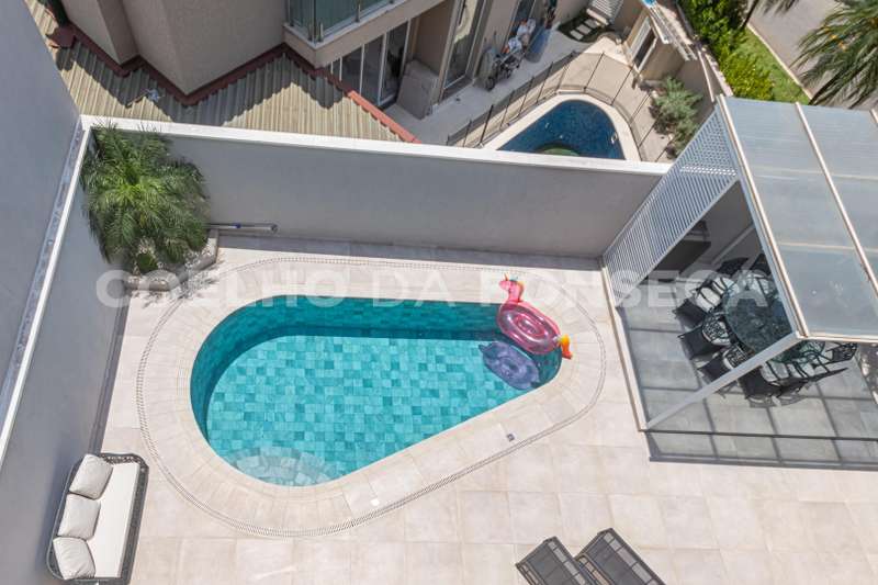 Belíssima residência de esquina, com vista maravilhosa, acabamento de alto padrão. Decoração estilo clean, equipada com armários da Florense e ar condicionado. Area de lazer com churrasqueira, piscina com aquecimento solar e salão de jogos, com privacidade e voltado para a mata. Construção solida e com manutenção impecável. Otima localização proximo a area de lazer do condomínio e da portaria. Vale a pena conhecer !!