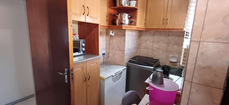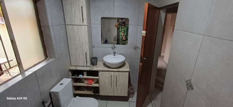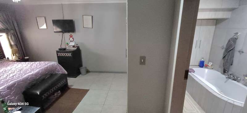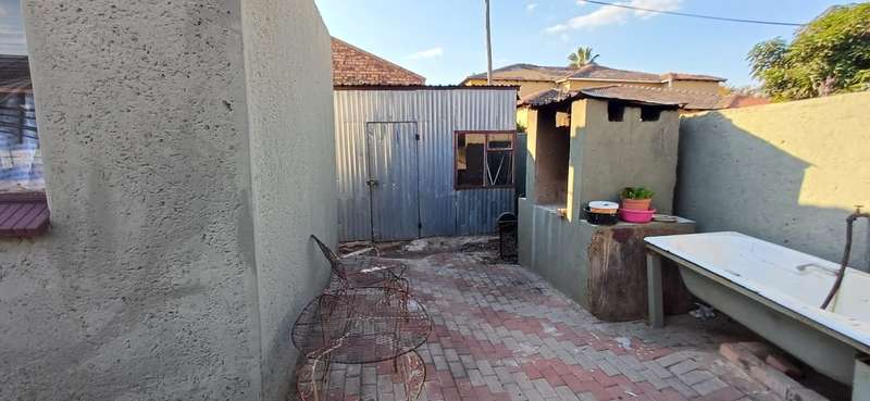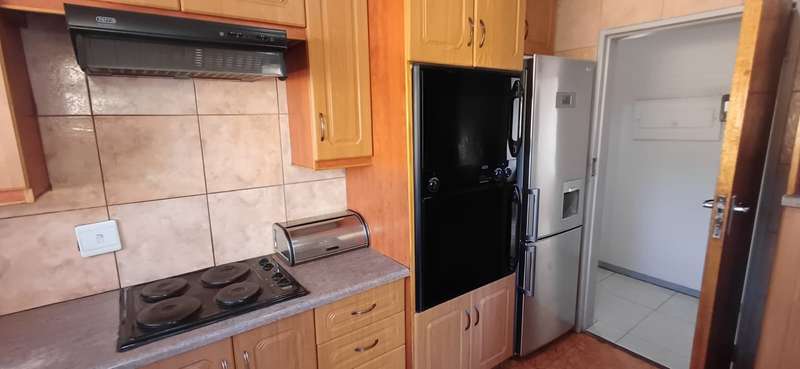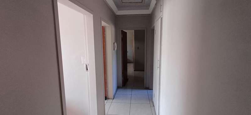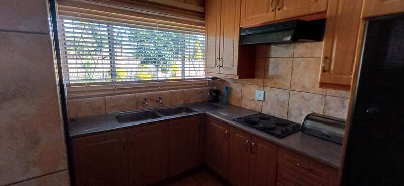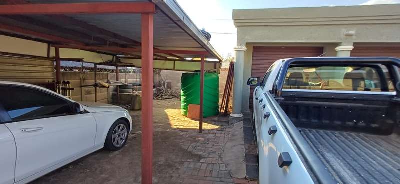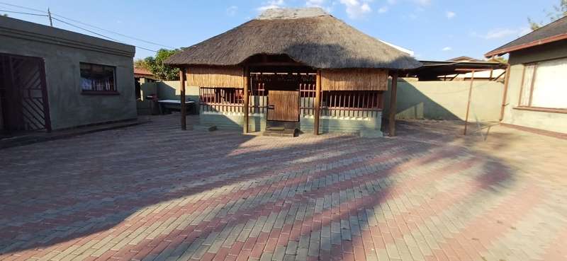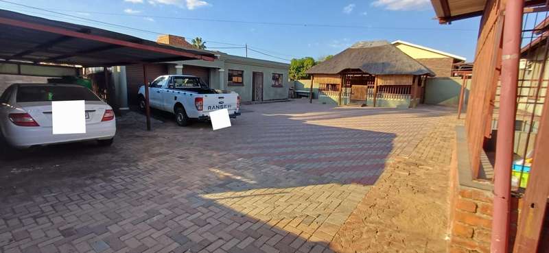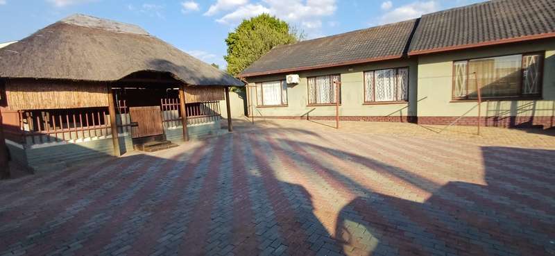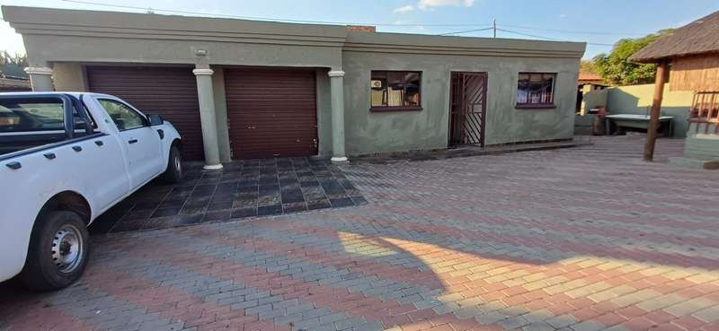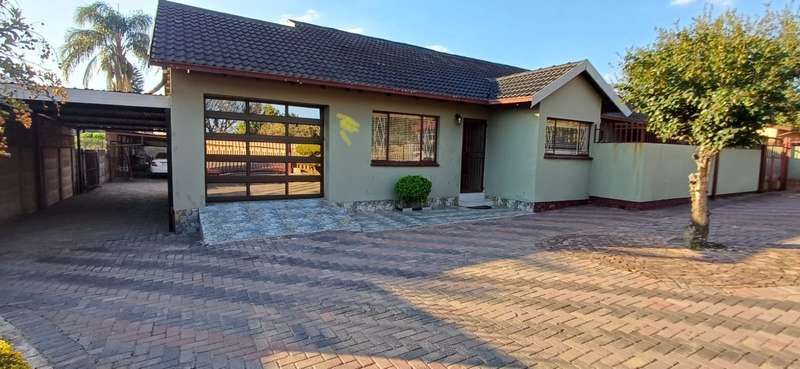 This well-kept property offers everything you need for comfortable living. The home boasts 3 bedrooms with built-in cupboards, including a main bedroom with air-conditioning and ensuite bathroom. A spacious lounge and dining room flow effortlessly into the fitted kitchen, complete with electric hob and double eye-level oven. The paved, low-maintenance yard makes upkeep a breeze, while a backup generator ensures peace of mind. Enjoy entertaining under the thatch lapa, or take advantage of the 2-bedroom outside building with toilet – ideal for extended family, guests, or rental income potential. Additional features include: Tandem carport + 1 extra carport Double garage Multipurpose room for storage, hobbies, or a home office Conveniently located only 500m from Renbro Shopping Centre and 2.5km from Jubilee Mall, this neatly maintained home combines practicality, comfort, and prime location. Don’t miss out – call today to arrange your viewing!