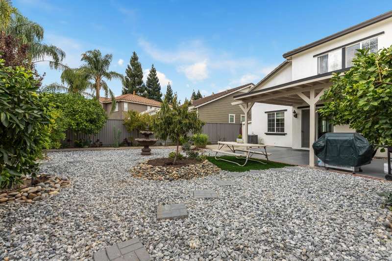 Welcome to this elegant Shea Home offering 4-5 bedrooms and 3 baths across two spacious levels. With a light-filled open floor plan, attached 2 car garage, and a beautifully designed backyard, this residence is perfect for both entertaining and everyday living. The primary suite is a true retreat, featuring custom tile & bamboo flooring, abundant natural light, and a spa-like en-suite with dual sinks, a sunken tub, glass shower, and walk-in closet. Secondary bedrooms showcase classic wood flooring and plenty of space for family or guests. The heart of the home is the chef's kitchen complete with stainless steel appliances, granite countertops, a decorative tile backlash, and a center island ideal for gatherings. The inviting living room highlights rich wood flooring and oversized windows, creating a warm and welcoming atmosphere. Modern smart home features, such as advanced smart locks, add convenience and peach of mind. Step outside to a covered patio, low-maintenance landscaping, and a powered shed with ADU potential. All of this is located within 15 minutes of Tom Hawkins Elementary and Raleys Supermarket, blending comfort, style, and everyday convenience.