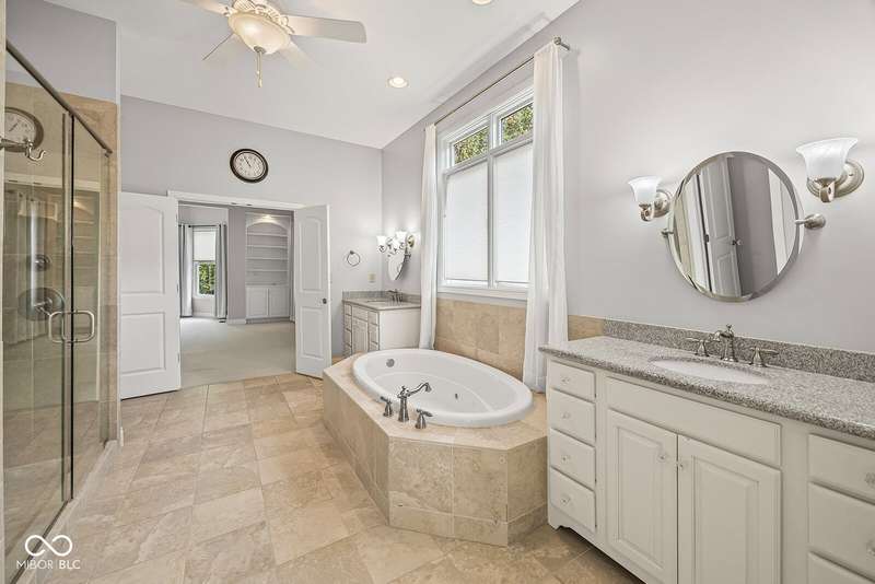 This custom-built home sits on a beautiful partially wooded lot and is full of charm and thoughtful upgrades. Step into a gorgeous entryway that sets the tone with decorative columns, arched doorways, wainscoting, and custom built-ins throughout. The impressive kitchen features a large island with seating, custom cabinetry, and a spacious breakfast room that overlooks the backyard. The primary suite is a true retreat with bay windows, a large ensuite bath complete with a jetted tub, dual sinks, and a generous walk-in closet. Five of the six bedrooms are ensuite and offer large closets. The partially finished basement includes a rec room with a pool table and wet bar-perfect for entertaining. Outside, enjoy the open patio, deck, or relax on the covered porch while taking in the peaceful backyard. Call your favorite realtor today to schedule a private showing!