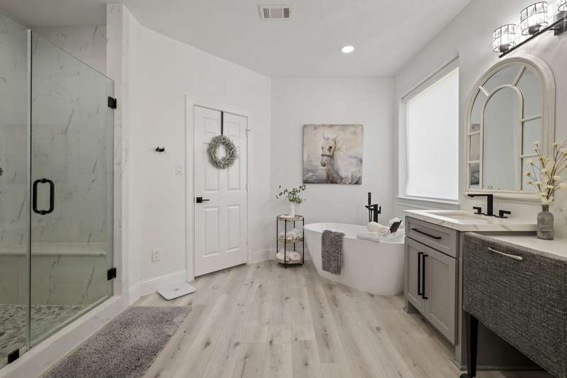 Situated in the highly sought-after community of Lake Windcrest, this masterfully reimagined residence showcases a complete transformation, blending timeless sophistication with modern luxury. From the freshly painted exterior and new garage doors to the expansive outdoor kitchen, every element has been curated for both style and function. Inside, the layout has been thoughtfully redesigned—walls removed to create an open-concept kitchen and family room anchored by a striking new fireplace. Custom cabinetry, elegant countertops, and luxury vinyl flooring elevate every space, while each bathroom has been luxuriously updated with premium finishes. The laundry room has been reconfigured for optimal efficiency, and the insulated, climate-controlled garage adds flexible living or workspace potential. This exceptional home offers turnkey elegance in one of Magnolia’s most desirable neighborhoods.