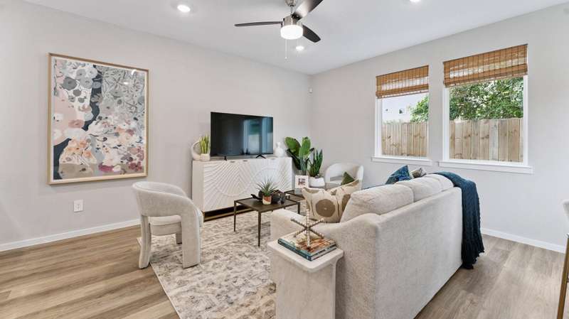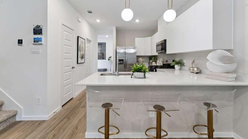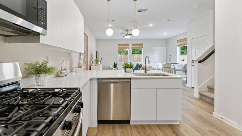 The Honeysuckle Floorplan offers 3 spacious bedrooms, 2.5 designer bathrooms, and a 2-car attached garage, this open-concept layout is ideal for first-time homebuyers or anyone looking for an affordable, energy-efficient home in a planned community. The first floor boasts a bright and open concept room, a modern gourmet kitchen with stainless steel appliances, quartz countertops, a large walk-in pantry, and a connected dining area perfect for entertaining. A convenient powder bath and laundry space with washer/dryer connections add functionality, while the private garage offers direct home access. Upstairs, the primary suite is a relaxing retreat with a spacious walk-in closet, and a luxurious on suite bathroom featuring dual sinks and a walk-in shower. Two additional bedrooms and a full bathroom provide flexibility for guests, or a home office. The Honeysuckle is built with today’s top features including smart home technology, energy-efficient materials, and durable finishes.