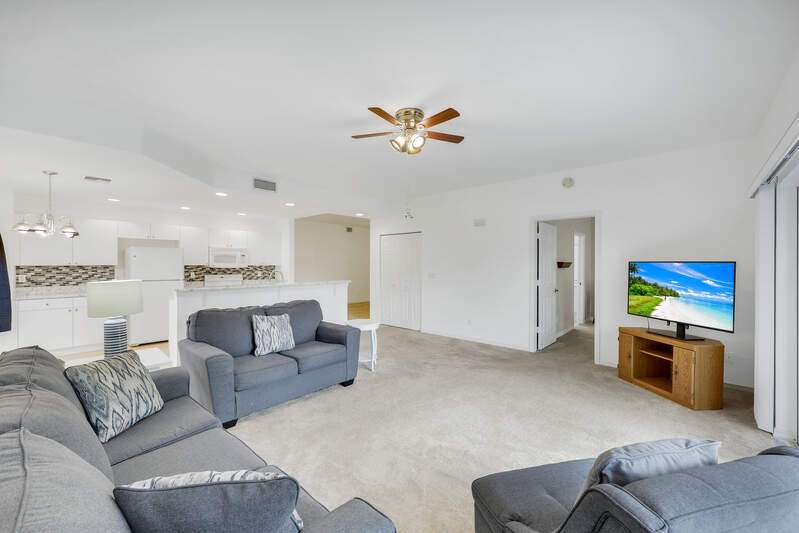 Discover Your Dream Condo in SWFL! Don't miss this amazing opportunity to own a spacious 2-bedroom + den condo, with the potential to easily convert the den into a third bedroom. The open Great Room design is perfect for entertaining, featuring a modern kitchen with a generous breakfast bar that flows seamlessly into the dining area and a screened lanai, where you can enjoy serene, private views of the lush landscaping. Retreat to the spacious primary suite, complete with a walk-in closet and an ensuite bath featuring dual vanities and a relaxing walk-in shower. Just steps away, you'll find a sparkling heated pool and a beautiful clubhouse, perfect for socializing with neighbors or enjoying a leisurely day in the sun. Woods Edge is an ideal location, boasting picturesque sidewalks that are perfect for leisurely strolls or biking. With low HOA fees and close to dining, shopping, and the stunning Gulf beaches, this condo is the perfect choice for a year-round residence or a seasonal getaway. Don't wait! Call today to schedule your private tour and take the first step toward making this exceptional condo your new home! Buildings will be painted next month.