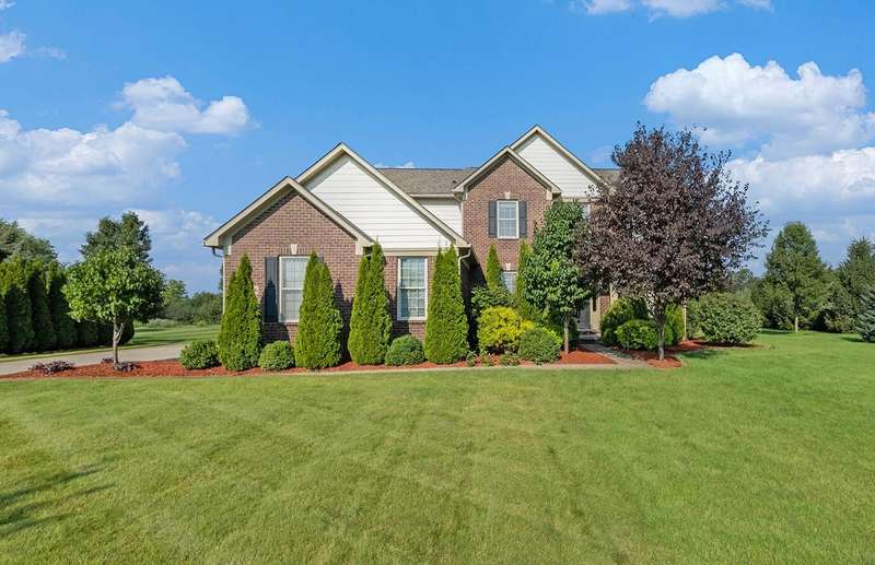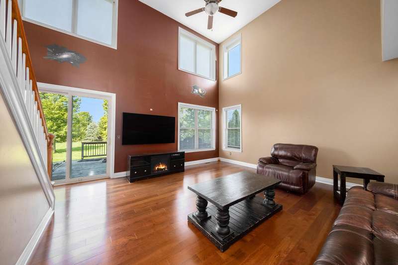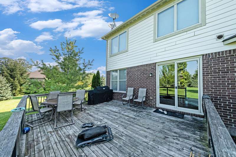 Showings start Friday 8/29! Spacious 4-bedroom, 3.1-bath home with nearly 3,000 SF on a full acre! Features include hardwood floors, crown molding, formal dining with decorative wainscoting & a main-floor office. Granite kitchen boasts a center island with snack bar, pantry & SS appliances, opening to the family room with gas fireplace. Two-story living room with doorwall to deck overlooks the large, private backyard, great for entertaining. Upstairs, the primary suite offers a tray ceiling, fantastic walk-in closet & custom-tiled shower with soaker tub. Convenient upper laundry near the rooms, a second bedroom suite, two additional bedrooms with double closets, and a third full bath complete the upper level. Full walkout basement with high ceilings provides excellent space for future finishing. Price reflects some needed cosmetics but a great home with plenty of space both indoors and out!