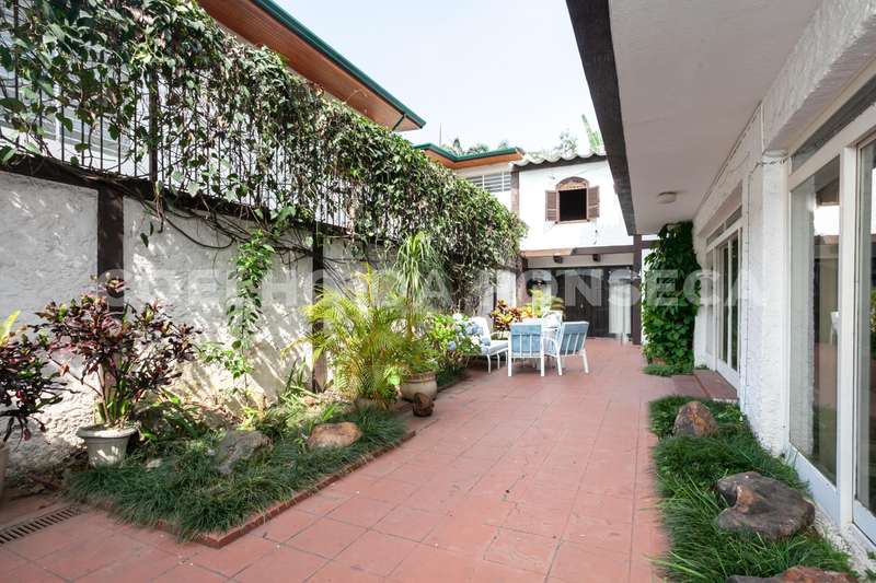 Pense em uma casa fresquinha, banhada por luz natural. Em estilo colonial Tudor, tem paredes de 30 cm de espessura, que garantem temperatura agradável o ano inteiro. Portas e janelas de mogno maciço entalhado à mão. Sala em três ambientes, com amplas portas de vidro que conectam a área interna ao jardim. A edícula é um destaque. Com acesso independente, inclui um espaço versátil de 80 m², com suíte e salão em dois ambientes com lareira. No coração do Alto de Pinheiros, próxima à Praça Panamericana e colégios Santa Cruz e Rainha da Paz
