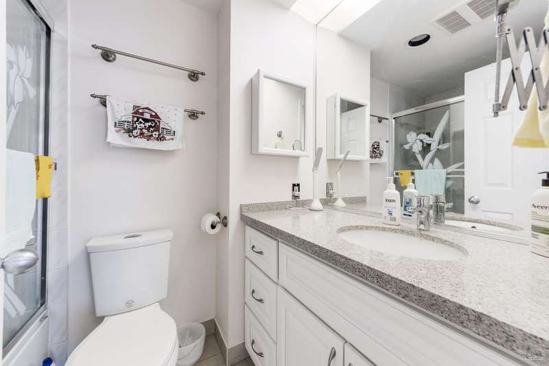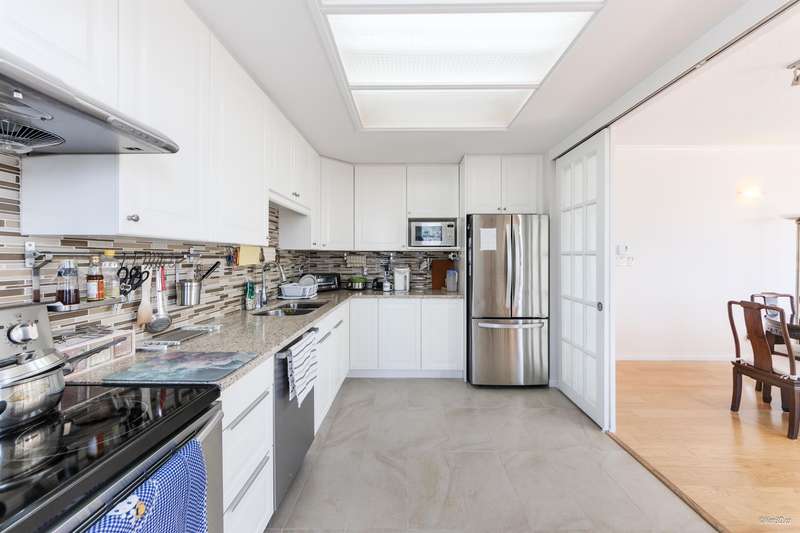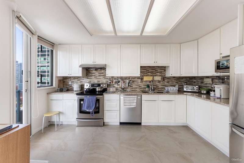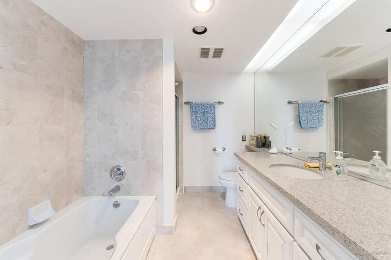 Come home to this spacious 1205sf 2 bed-2 bath unit in central Burnaby, conveniently located near Metropolis, Crystal Mall, restaurants, and public transit. Already with a functional layout w/ generous sized bdrms, this home was majorly renovated in 2015, including a rare semi-enclosed gourmet kitchen with new cabinets, counters, backsplash, and s/s appliances, engr H/W flr, bathroom counters, and closets. Balconies and oversized windows allow for bright natural light into the home. Amenities include swimming pool, fitness centre, sauna, ping pong room, garden, and tennis ct. Includes 1 parking and 1 storage locker. School catchment: Marlborough Elementary and Moscrop Secondary.