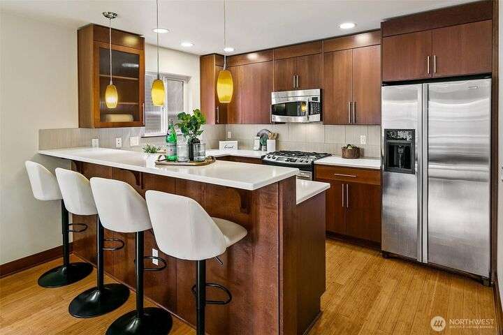 Beautiful three-story home, two primary suites on the top floor and a half bath on the main floor. Fun and flexible open floor plan on the main with quartz breakfast bar, hardwood floors, and gas fireplace. Spacious 1.5-car garage with extra storage space. Located near transit, light rail including a new Judkins light rail station coming next year. Easy to get to Madrona Park, Lake Washington, Seattle University, and Chinatown. So many great eats only steps away, or use one of the handy bike routes. Come see this fresh and conveniently located home!