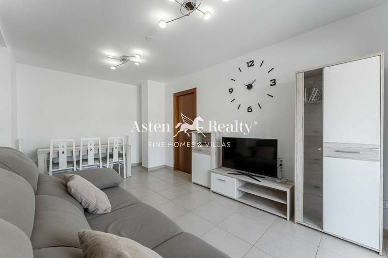We offer a wonderful 2 bedroom flat in the village of Alcalá (Guia de Isora), in a modern building, a pleasant walk from the beach, pier and promenade. This flat consists of a living-dining room with exit to the balcony with view to the church and lateral view to the sea, independent kitchen, 2 spacious bedrooms, a complete bathroom with bathtub and a very spacious pantry.