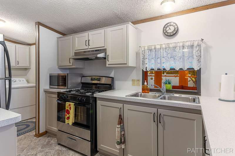 Welcome to 14128 Luckett Lane. Located in Grand Haven Township and situated on a 1-acre lot on a private Drive, this 2 bedroom 2 bath manufactured home is in move in condition and ready for a new owner. Upon entering you will find an updated kitchen with a large snack bar, updated cabinets, pantry, new gas stove and new floor coverings throughout the home. The open-concept dining and living room area is perfect for entertaining and the office/den could be used as a third bedroom. The primary suite offers a nice-sized bedroom with double closets and a full bath. Down the hall there is the second bedroom and another full bath. You are sure to enjoy the spacious 3-season room looking out to the partially fenced backyard. The 2-stall garage has a workbench area and an enclosed storage room. Other amenities include underground sprinkling and central air. If you are looking for a home that is located close to parks, the boat launch and Potawatomi Bayou then this might be the home for you Seller is a licensed REALTOR in Michigan.