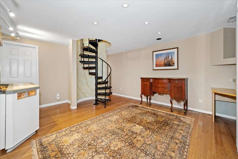 One of only seven spacious contemporary townhomes with a coveted garage on a great block in Cool Springs! The unique architecture features an open kitchen and dining room with adjacent sunroom, a spacious living room with 10 1/2 foot ceilings, a fireplace, and glass doors to a composite deck. The seller has owned this home for over 30 years and has lovingly maintained and improved it into a fabulous space for entertaining and relaxation. The gourmet kitchen features all custom cabinetry, high end appliances, a 5 burner induction cooktop and a convenient above stove pot filler. Truly a chef's delight, there is ample granite counter space and unique details such as a built-in curved spice shelf. One of the bedrooms is fit out for a home office complete with built-in counters. Spiral stairs from the main level lead to a fabulous tasting room with a wall of wine refrigerators and a built-in bar with lighted accented glass block. There is als a powder room on this level as well as laundry. Just a few steps up to the garage with opener and there you will discover all of the components of a second kitchen. This is ideal for large scale entertaining or catering. The top level of the home has a skylight and glass french doors leading to the luxurious primary suite. The bathroom features a new tiled spa shower, jacuzzi and double vanity, a sitting area adjacent to the sunken bedroom with a volume ceiling. Fantastic neighborhood walkable to many of the festivals like the Greek Festival and the Italian festival. Hop right on I-95 and get to PHL airport in 25 mins! This home is a must see! All appliances are included so move right in and make it yours!