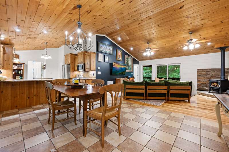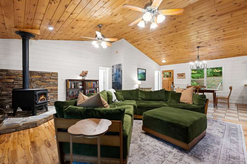 Immerse yourself in the beauty of this remarkable home, ideally situated on a generous 5-acre unrestricted tract in a tranquil and secluded neighborhood surrounded by lush woods. A picturesque creek gently winds through the property, enhancing its serene and natural allure. This exceptional location is adjacent to Blackburn Vannoy Farm, a preserved 369-acre expanse safeguarded by the Blue Ridge Conservancy. Residents enjoy unique access to scenic hiking trails that highlight the area's rich history, including its original logging routes. Step inside this inviting home, where an open-concept layout harmoniously blends living spaces, creating a warm and welcoming atmosphere. Beautiful hardwood flooring flows seamlessly throughout, adding an elegant touch to the interior. The home features a spacious two-car garage for convenient storage and protection of vehicles. Gather around the cozy, wood-burning freestanding fireplace on cooler evenings to create cherished memories with family and friends. With four generously sized bedrooms and two family rooms, this layout is ideal for both everyday living and hosting guests. The kitchen serves as a charming focal point, boasting maple cabinets that lend a touch of rustic elegance, granite countertops, and stainless steel appliances. The primary bath has been tastefully remodeled, showcasing a sleek modern shower, stylish tile flooring, and upgraded fixtures that enhance both functionality and aesthetics. Additional enhancements to the property include brand-new luxury vinyl tile (LVT) flooring in the basement, ensuring comfort and practicality. For those needing extra storage, an outbuilding equipped with electricity provides ample space for tools, outdoor equipment, or hobby projects. Outdoor enthusiasts will appreciate the expansive covered decks that invite relaxation and entertaining amid nature. Nature lovers will enjoy the numerous hiking opportunities and breathtaking mountain vistas surrounding the property, providing a perfect blend of outdoor recreation and peaceful living. Despite its serene setting, essential services are conveniently located just a short distance away. The vibrant town of West Jefferson is a mere 10-minute drive way, offering a variety of shopping options, healthcare services, and local dining experiences. Boone, just 20 minutes away, adds even more activities, including skiing, charming restaurants, and picturesque hiking trails. Furthermore, the proximity to Appalachian State University enhances the location's attractiveness, making it ideal for families, faculty, or anyone who appreciates a vibrant community. This is an opportunity you won't want to miss?envision the extraordinary life you can create in this beautiful and inviting setting!