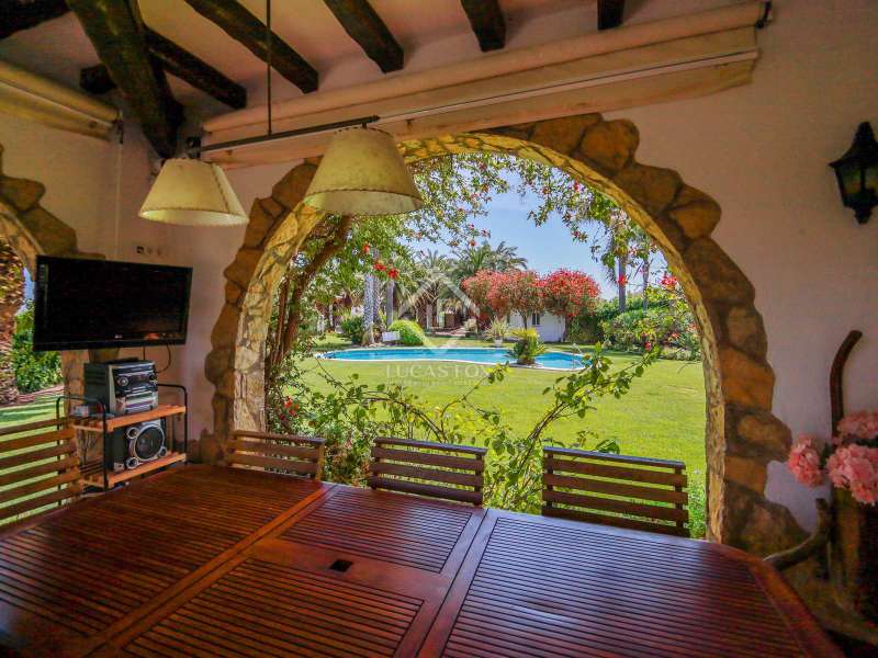 Exclusive villa facing the sea and on the beach in one of the most natural and virgin places of the Costa Dorada. Located in the municipality of Mont-roig Playa, next to the town of Cambrils, in an enclave where calm, discretion, tranquility, the sun and the sea surround this villa of classic architecture, endowed with generous gardens and lawns. natural, a large swimming pool and fresh palm groves with direct access to the sea from the private plot. An opportunity to have a unique and exclusive villa in an idyllic setting. The house built with a personal style and classic decoration, combines natural stone and wood in exteriors and interiors. An outstanding tower combines Mediterranean construction. After a cozy access on the ground floor, you access a hall with the detail of the natural wood staircase. Advancing towards the first living room and from this, to the kitchen-office with direct access to a large front summer porch, which directly connects the garden and the pool. This room is connected by the interior to the stately dining room and another circular living room with stone walls with a fireplace in the center. Through the wooden staircase and with prominence, we access the upper floors. On the first level, a passage area with the third living room with access to the terrace where we appreciate fantastic views of the sea and the large plot with the garden and pool. The rest of the floor is distributed in 3 double bedrooms and three bathrooms, two of them resting en suite. All with fixed wardrobes and enjoy the large terrace with great views of the garden and the sea. Another staircase gives access to an upper board with a unique wooden beamed ceiling. Corresponding to the upper part of the tower. This luxurious villa is signed by a cellar on the lower floor of the main building and a house at the entrance of the estate enabled as a complete private apartment and conditioned for the property's service personnel. But the best kept treasure of this property is without a doubt its privacy and independent natural environment, with no other neighbors on the edge of the plot and due to its reserved and paradisiacal location facing the sea, with direct access to the beaches, you can enjoy the calm and the colors of the Mediterranean landscape that so captivated the artist Joan Miró and his work conceived entirely in this enclave on the Costa Dorada. A great opportunity to acquire a property with exceptional characteristics facing the sea from the hand of Lucas Fox Tarragona. Get in touch with us and be surprised by your environment.