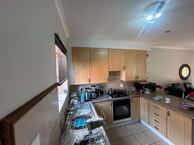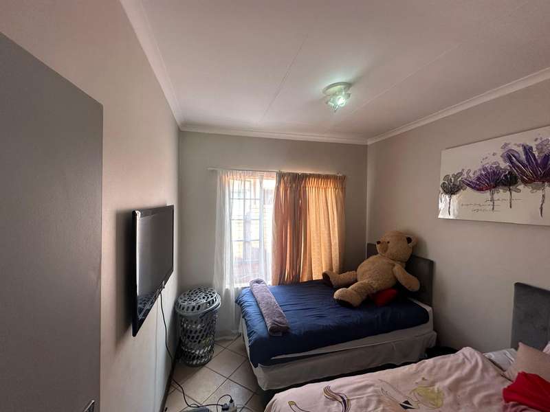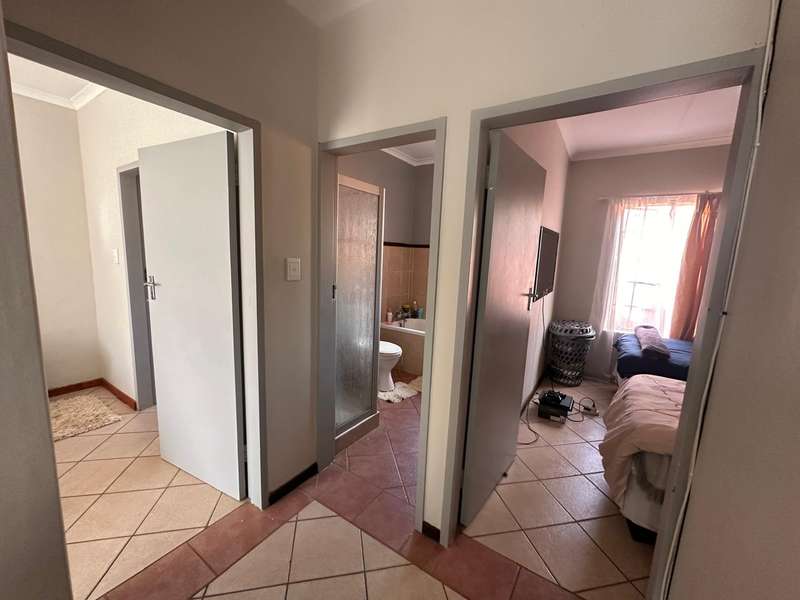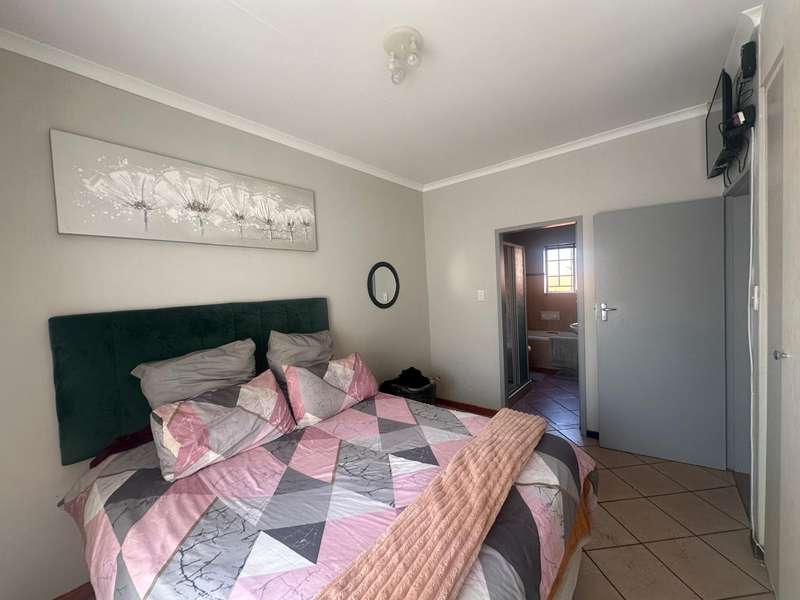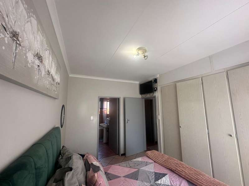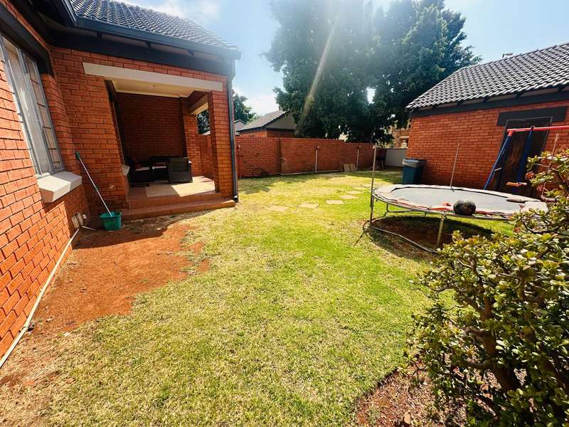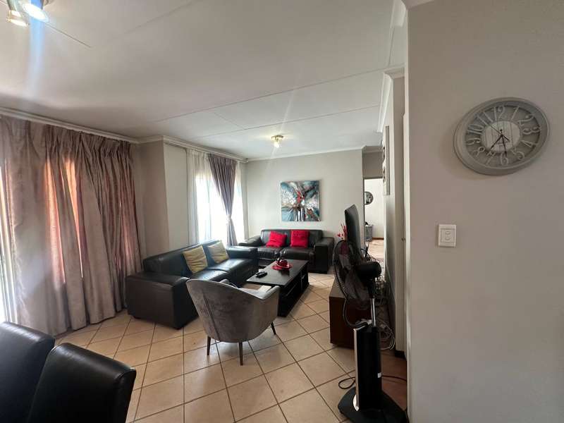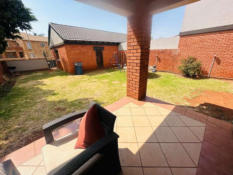 This stunning 2 bedroom, 2 bathroom gem offers a spacious main en suite and one full bathroom. The dining room and living room offers ample space for your family with an open plan kitchen that is perfectly sized! Step outside to the well-maintained patio and enjoy the serene atmosphere of the nice big garden. Double automated garage. The estate offers 24hr security that patrols around the estate, beautiful walkways, recreational facilities such as a swimming pool, clubhouse, tennis and squash courts and a play area for kids. This is a very good investment low maintenance townhouse and in a Popular Complex! Call now to book a viewing appointment.