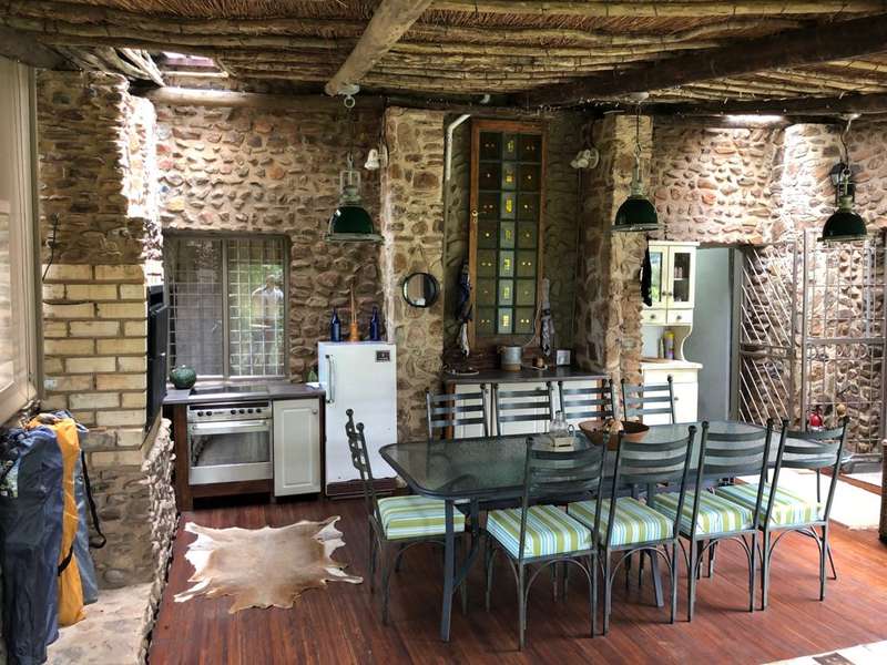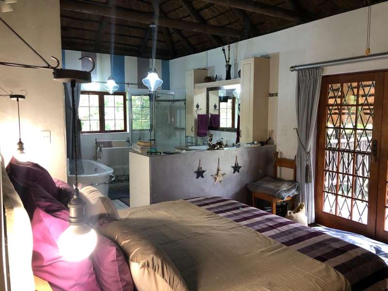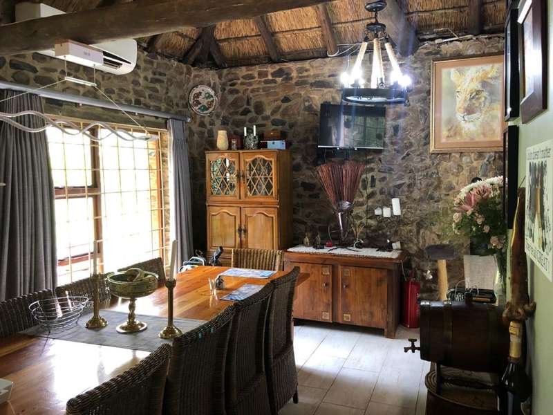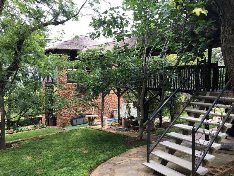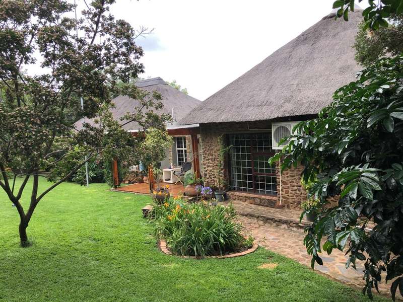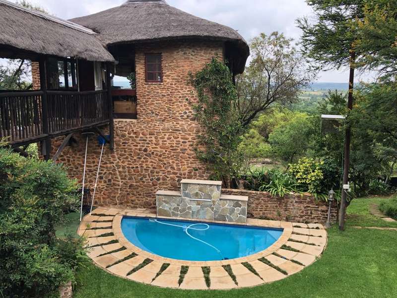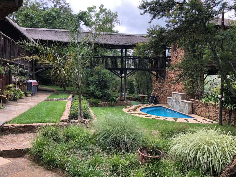 Experience the ultimate bushveld paradise and make it your very own! A magnificent lodge-type house set on 4.5 hectares, nestled against a hill with breathtaking views, is now available for you to call home. Live in an eco-estate surrounded by wildlife including Zebra, Blesbok, Impala, and Waterbuck, all roaming freely on your doorstep. This amazing property boasts three stunning bedrooms with the master bedroom featuring an en-suite bathroom and walk-in wardrobe. Plus, two additional bedrooms, separate from the main house, with their own bathroom, that can be used as a bed and breakfast . You'll love the upgraded kitchen with modern finishes, gas stove, electric oven, and scullery. The dining room and lounge, complete with gas and anthracite fireplaces, flow off the kitchen. All bedrooms have underfloor heating, while the lounge features beautiful wooden flooring. Plus, there's a guest toilet on the main deck for convenience. A large study with underfloor heating next to the veranda and braai area can be closed with dropdown canvas, allowing for ultimate privacy. A walkway leads to the lookout deck with a bar and veranda overlooking the picturesque valley. A sparkling pool in the garden and a fishpond with a bench complete this magnificent picture. With staff accommodation that includes two bedrooms, a kitchen, and bathroom, you'll have everything you need. A strong borehole and 3-phase electricity complete this stunning package. Don't miss out on the opportunity to own your own bushveld paradise! Contact us today to schedule a viewing.