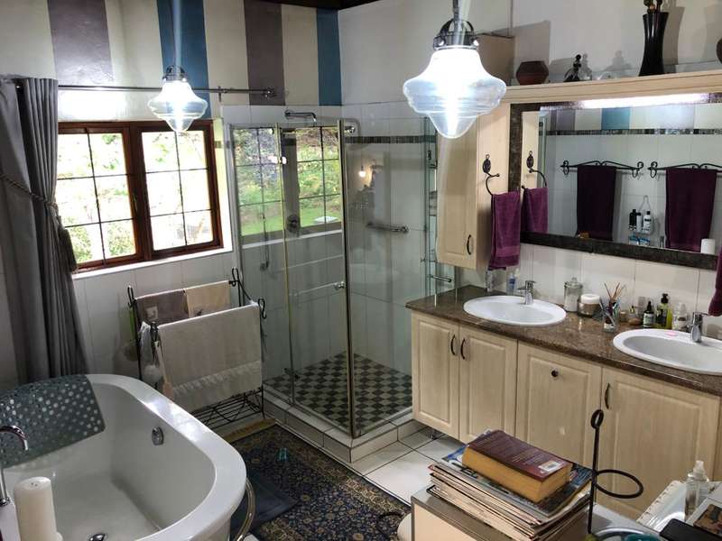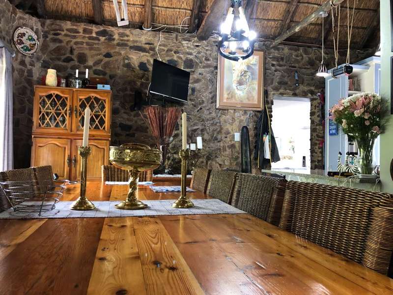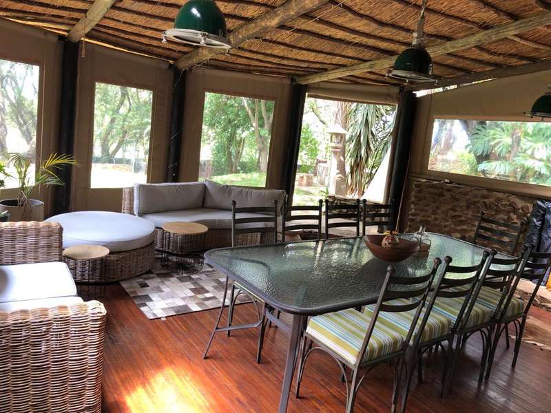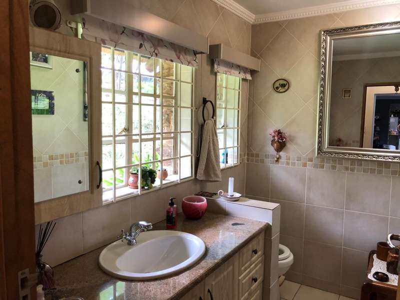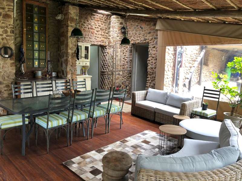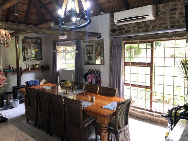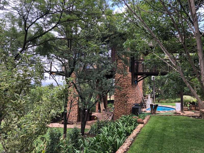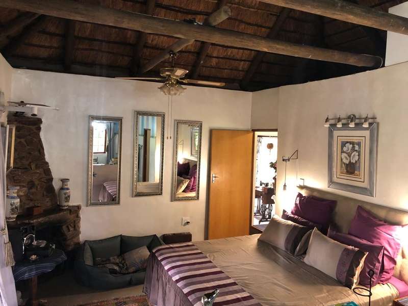 Experience the ultimate bushveld paradise and make it your very own! A magnificent lodge-type house set on 4.5 hectares, nestled against a hill with breathtaking views, is now available for you to call home. Live in an eco-estate surrounded by wildlife including Zebra, Blesbok, Impala, and Waterbuck, all roaming freely on your doorstep. This amazing property boasts three stunning bedrooms with the master bedroom featuring an en-suite bathroom and walk-in wardrobe. Plus, two additional bedrooms, separate from the main house, with their own bathroom, that can be used as a bed and breakfast . You'll love the upgraded kitchen with modern finishes, gas stove, electric oven, and scullery. The dining room and lounge, complete with gas and anthracite fireplaces, flow off the kitchen. All bedrooms have underfloor heating, while the lounge features beautiful wooden flooring. Plus, there's a guest toilet on the main deck for convenience. A large study with underfloor heating next to the veranda and braai area can be closed with dropdown canvas, allowing for ultimate privacy. A walkway leads to the lookout deck with a bar and veranda overlooking the picturesque valley. A sparkling pool in the garden and a fishpond with a bench complete this magnificent picture. With staff accommodation that includes two bedrooms, a kitchen, and bathroom, you'll have everything you need. A strong borehole and 3-phase electricity complete this stunning package. Don't miss out on the opportunity to own your own bushveld paradise! Contact us today to schedule a viewing.