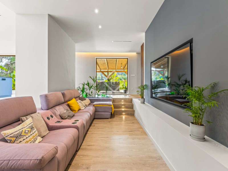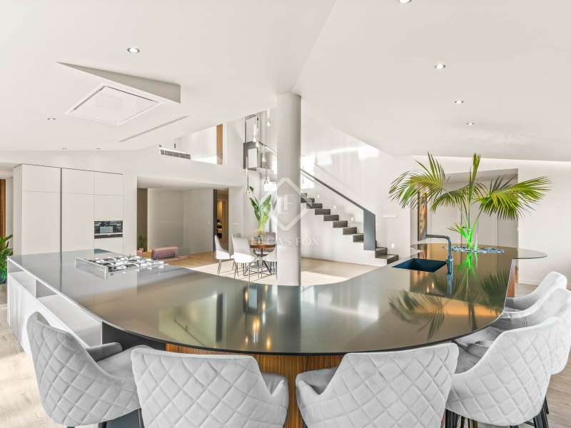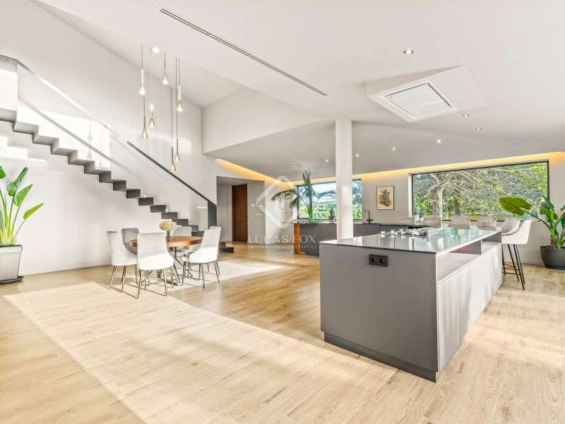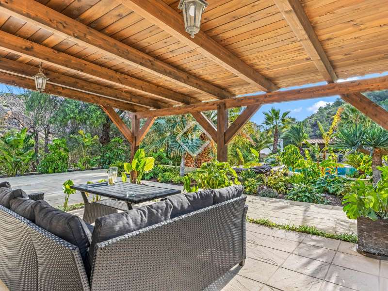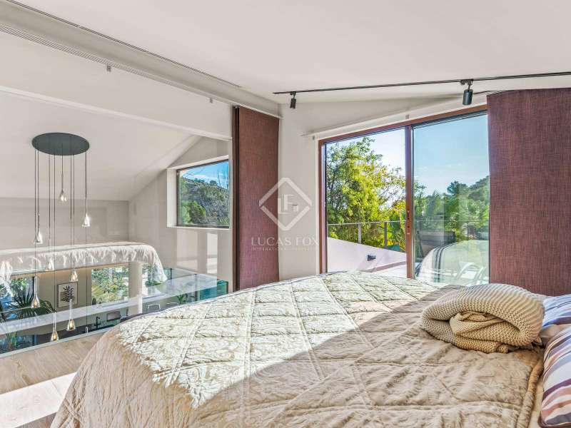 This exquisite property, completely renovated with high-quality design, presents itself as a real estate gem in a privileged environment. Located in a protected natural park, it offers the perfect combination of serenity and accessibility, being just 30 minutes away from Alicante city. With easy and beautiful access from the main road, this chalet is surrounded by nature between two mountains. Additionally, it is located next to a horse riding center. The house, surrounded by olive groves, stands out for its exceptional privacy. The property is distinguished by its unique distribution over 2 floors. The ground floor welcomes us with a spacious kitchen and open-plan living area, with high ceilings and seamlessly connected to the outdoor terrace. This floor also offers a TV lounge and a sleeping area with 3 en-suite bedrooms, an office, laundry facilities, and a guest bathroom. The second floor features a private master bedroom area with an incredible terrace overlooking a beautiful garden, a spacious walk-in closet, and a huge bathroom with a glass roof, allowing you to admire the starry sky while enjoying a bath. A beautiful garden with mature trees surrounds this property, featuring a large swimming pool with cascades and multicolored lights, perfect for relaxation and leisure. Additionally, the summer kitchen is ideal for hosting paella or barbecue parties, adding charm and enjoyment to outdoor life. Every corner of this property and garden is designed to stimulate the senses and provide a unique experience for those seeking quality and privacy. In a discreet location in the garden, there is a separate guest or service house with one bedroom, a TV room, a bathroom with shower, a fully equipped kitchen, a patio with barbecue, and panoramic views of the olive groves. This property is exclusively available through Lucas Fox, offering an unparalleled lifestyle that combines luxury, privacy, and accessibility. Contact us to arrange a visit.