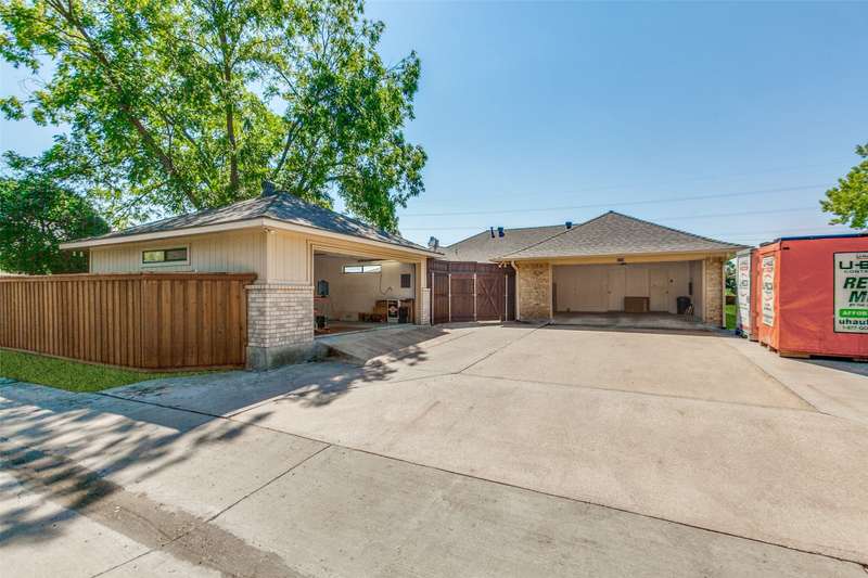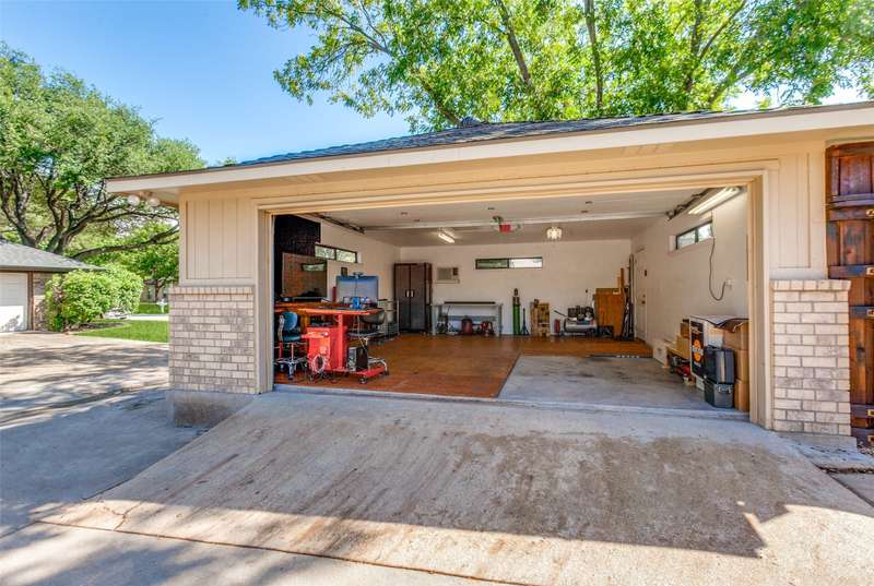4 GARAGE SPACES + IMMACULATE CARE! This beautifully maintained 3 bedroom, 2 bath Richardson home sits on a spacious corner lot with green space right across the street. Enjoy two garages with a total of 4 covered parking spaces, including a custom built detached garage with heating & cooling, attic storage, a 100 amp panel, and multiple outlets, which makes it perfect for a workshop, studio, or hobby space. The attached 2-car garage includes an 8 x 11 ft storage room with deep built-in shelving. Extra driveway parking accommodates an RV, boat, or additional vehicles.Inside, youll find 2,177 sq ft of flexible living space with timeless 1980s charm. The primary bath has been updated, and both bathrooms feature separate tub and shower layouts. The second bath offers hall and bedroom access for convenience. The kitchen and primary suite both open to the covered patio and private backyard, while a bonus room adds flexibility for work or play. Lovingly cared for and ready for your personal touch! Recent updates include HVAC, roof, water heater, garage door opener, and a French drain at the detached garage.Washer, dryer, utility room refrigerator, and spa available for inclusion if desired.