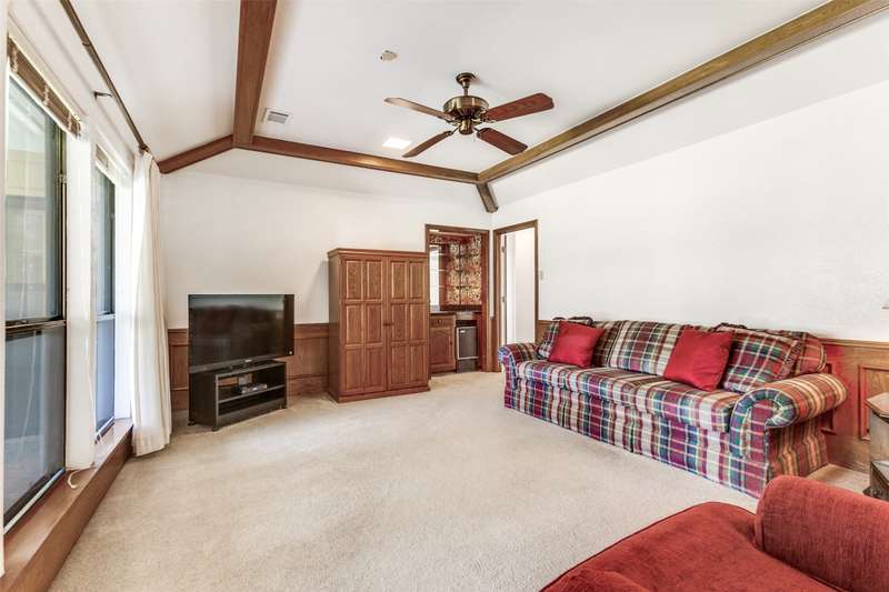 4 GARAGE SPACES! UPDATES include HVAC, roof, water heater, main garage door opener, and a French drain at the front of the detached garage. Perfectly situated on a spacious corner lot, this property features 2 GARAGES offering 4 total parking spaces, plus an extended driveway for an RV, boat, or extra vehicles! The highlight is the meticulously built detached 2-car garage, designed to match the home brick-for-brick, roof-to-shingle. Fully finished with attic storage, heating and cooling, and multiple overhead and wall outlets powered by a custom electric panel (100 amps direct to garage), its more than parkingits a workshop, studio, or hobby space with dual access via yard and driveway. The attached 2-car garage includes an 8 x 11 ft storage room with deep built-in shelving. Inside, 2,177 sq ft of well-planned space offers both personality and flexibility. The living room features wood paneling, a brick fireplace, and greenbelt views. The kitchen features an electric range with a nearby gas line, which may allow for conversion to gas. Additional highlights include a sink filtration system, peninsula counter, built-in hutch, and a breakfast nook that opens to the covered patio and backyard. A bonus room with built-in shelving and a wet bar can serve as a media room, office, or playroom. The bedroom wing includes two secondary bedrooms, one with private bath access and built-ins. The hall bath has dual sinks, a tub, and separate shower. The primary suite includes dual walk-in closets, dual vanities, soaking tub, separate shower, and direct access to the covered patio. Outside, enjoy a covered patio, spa, hobby space, access to detached garage, privacy fence, and storage shed. A true Richardson original, beautifully maintained and thoughtfully designed this home is ready for the next owner to live, work, and play without compromise.Washer, dryer, utility room refrigerator, lawnmower, edger, generator, and spa available for inclusion if desired.
