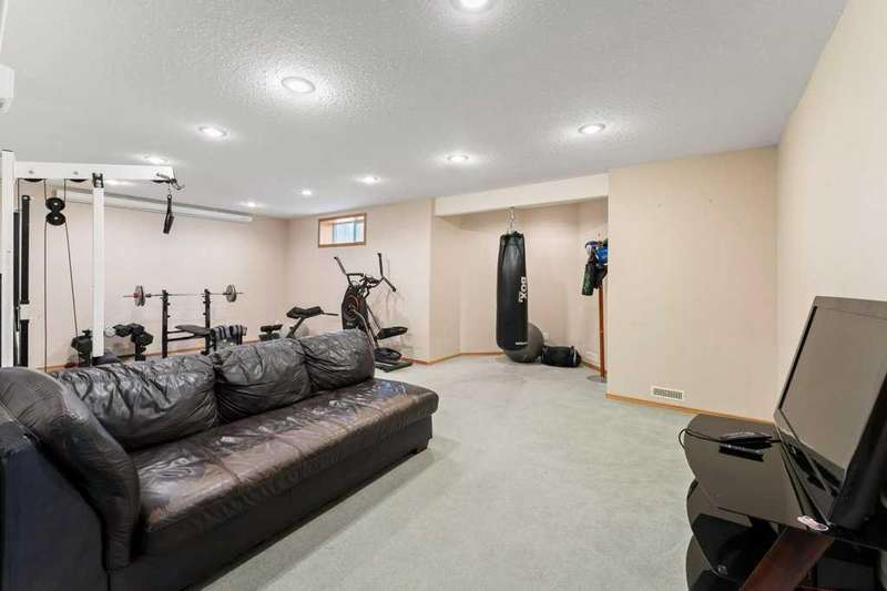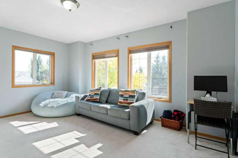 This immaculate, move-in ready home offers over 3,300 sq. ft. of beautifully finished living space in one of Strathmore’s most desirable cul-de-sacs. With a tile roof, stucco exterior, and timeless design, this property has been exceptionally maintained and is ready for its next family. Step inside to a vaulted entrance that opens into a bright, open-concept main floor filled with natural light. The spacious kitchen features granite countertops, a corner pantry, stainless steel appliances, and a sunny breakfast nook overlooking the backyard. The inviting family room is anchored by custom oak built-ins with granite accents, perfect for cozy evenings or entertaining. A convenient main floor laundry, mudroom, and 2-piece bath complete this level. Upstairs, you’ll find a generous bonus room – ideal for a kids’ zone, family movie space, or home office. The primary suite easily accommodates a king bed and offers a full ensuite and walk-in closet. In total, this home provides 5 bedrooms and 3 full bathrooms, giving everyone their own space. The professionally finished basement, developed by the builder, adds even more living and storage options. Outdoor living is made easy with a deck (with gas line for BBQ), underground sprinklers, and mature landscaping. Additional highlights include: dual furnaces, dual hot water tanks, and a reverse osmosis system. All this in a prime location: tucked away on a quiet cul-de-sac, just steps from parks, playgrounds, the new rec centre, and walking/biking paths. You’ll love the small-town charm of Strathmore with the convenience of easy access to Calgary for commuters. A rare opportunity to own a large, well-appointed family home in a highly sought-after neighbourhood – don’t miss it!