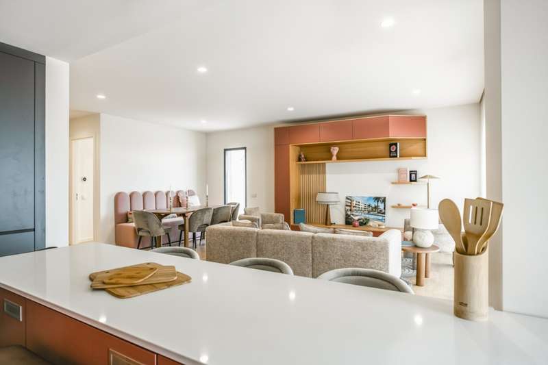 Fantastic 2-bedroom apartment for sale in Ferragudo, with swimming pool and balcony with river views, in the private condominium Ferragudo Hills Residence, a new residential development in the municipality of Lagoa, in the Algarve. This new apartment offers unobstructed views of the village and the River Arade, providing natural light which, combined with the tranquil surroundings, creates the perfect atmosphere of peace and luxury in a dream residence. The property has large indoor and outdoor areas, with the kitchen equipped with top-of-the-range appliances and plenty of storage space. The open-plan kitchen, dining and living room make the whole space harmonious and comfortable. The floor-to-ceiling windows, together with the fantastic balconies, guarantee maximum sun exposure and privacy. The two spacious bedrooms with built-in closets, two large bathrooms, one of which is private, are equipped with modern hanging dishes. Acoustic and thermal insulation and air conditioning offer this 2-bedroom apartment a superior level of comfort, complemented by private garden and parking. In a privileged and quiet residential area, the gated community offers security, exclusivity and peace, benefiting from unobstructed views over the countryside and the river, maximizing its orientation to obtain maximum sun exposure throughout the day. Ferragudo is an authentic and picturesque fishing village, full of history and charm with a unique fishing port, also framed by one of the most beautiful beaches in the Algarve. Located on the hilltop of the picturesque village of Ferragudo, just 3 minutes from the center, Ferragudo Hills Residence is close to golf courses, beaches, restaurants and a variety of cultural and leisure activities. With easy access to the A22 highway and the N125 national road, and just 45 minutes from Faro International Airport. CHARACTERISTICS:Area: 160 m2 | 1 723 sq ft Useful area: 81 m2 | 874 sq ft Bedrooms: 2 Bathrooms: 2 Energy efficiency: A FEATURES: 2 bedrooms Equipped kitchen Balcony / Terrace Swimming pool Garden Private parking Air conditioning