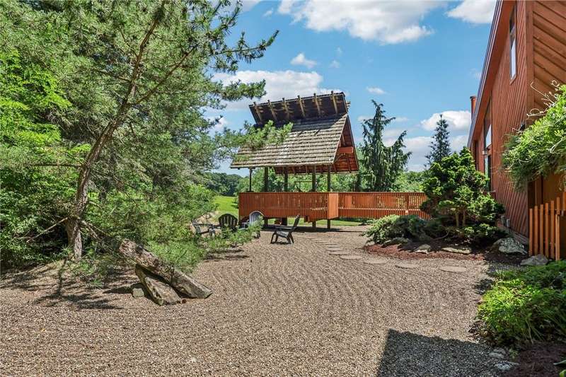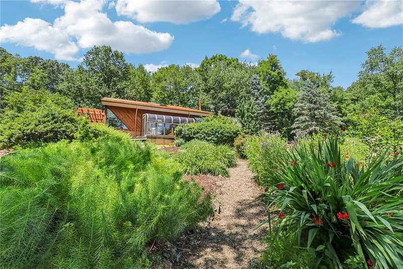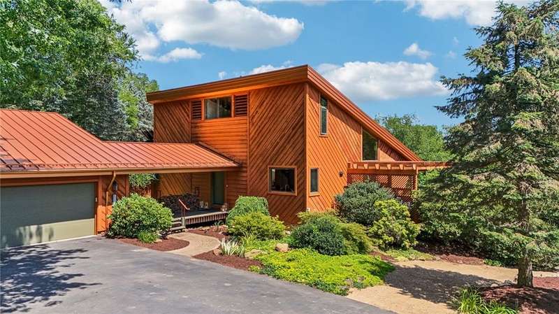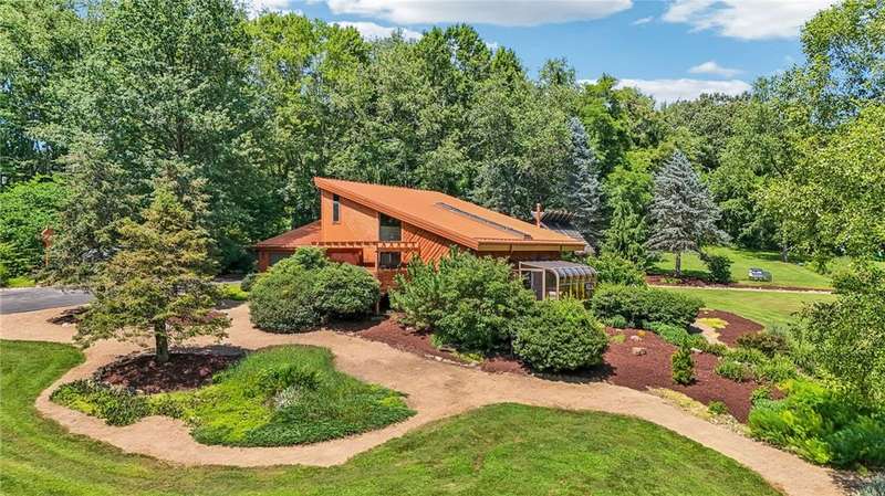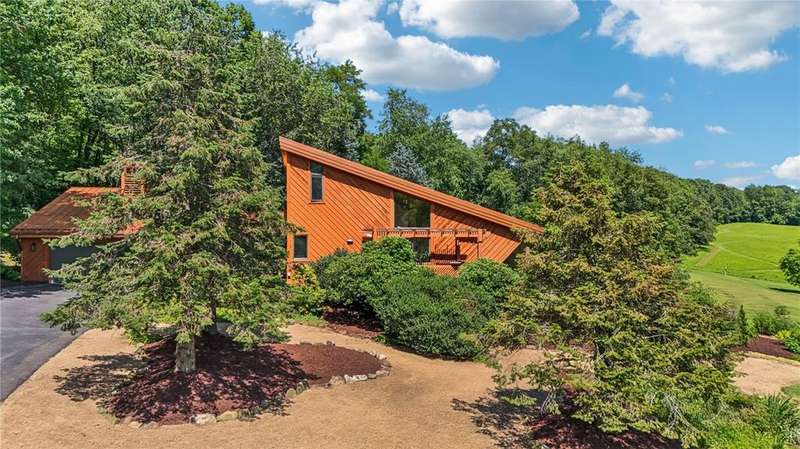 Set on 24.8 acres of gently rolling hills and open countryside, this one-of-a-kind, architect-designed contemporary home is a stunning blend of enduring craftsmanship, striking design, and modern comfort. Located just 25 minutes from downtown Pittsburgh and 45 minutes from the airport, this private retreat offers both serenity and convenience.
