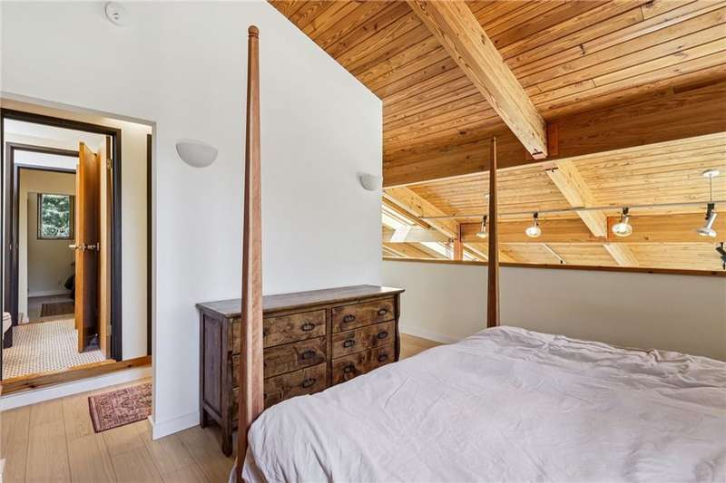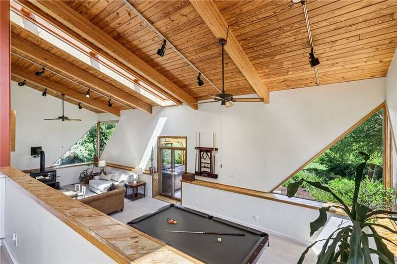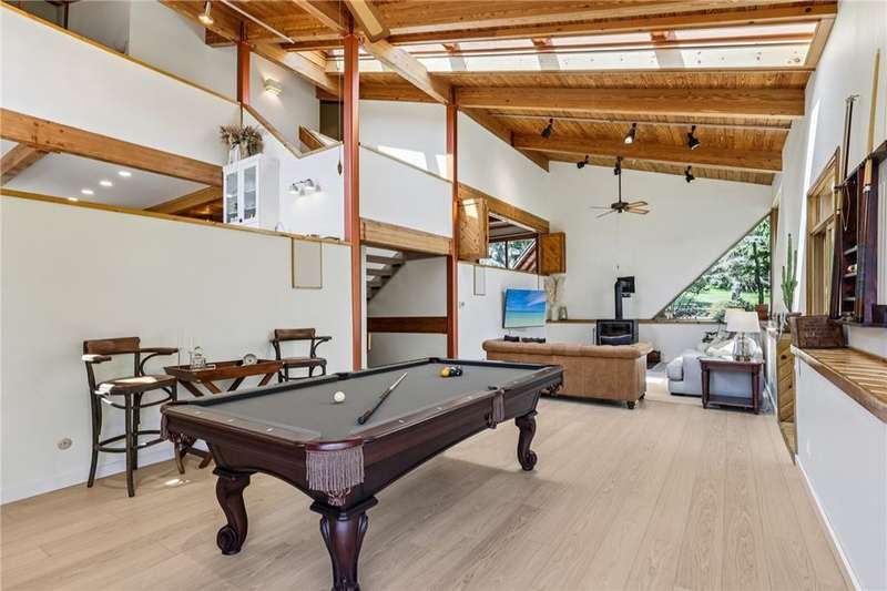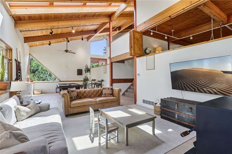 Vaulted ceilings, exposed beams, and signature corner windows define the dramatic living area, while a lofted, steel-and-timber architectural style adds unique character and warmth throughout. Every detail has been thoughtfully considered to preserve the original design ethos while incorporating fresh, high-end updates: